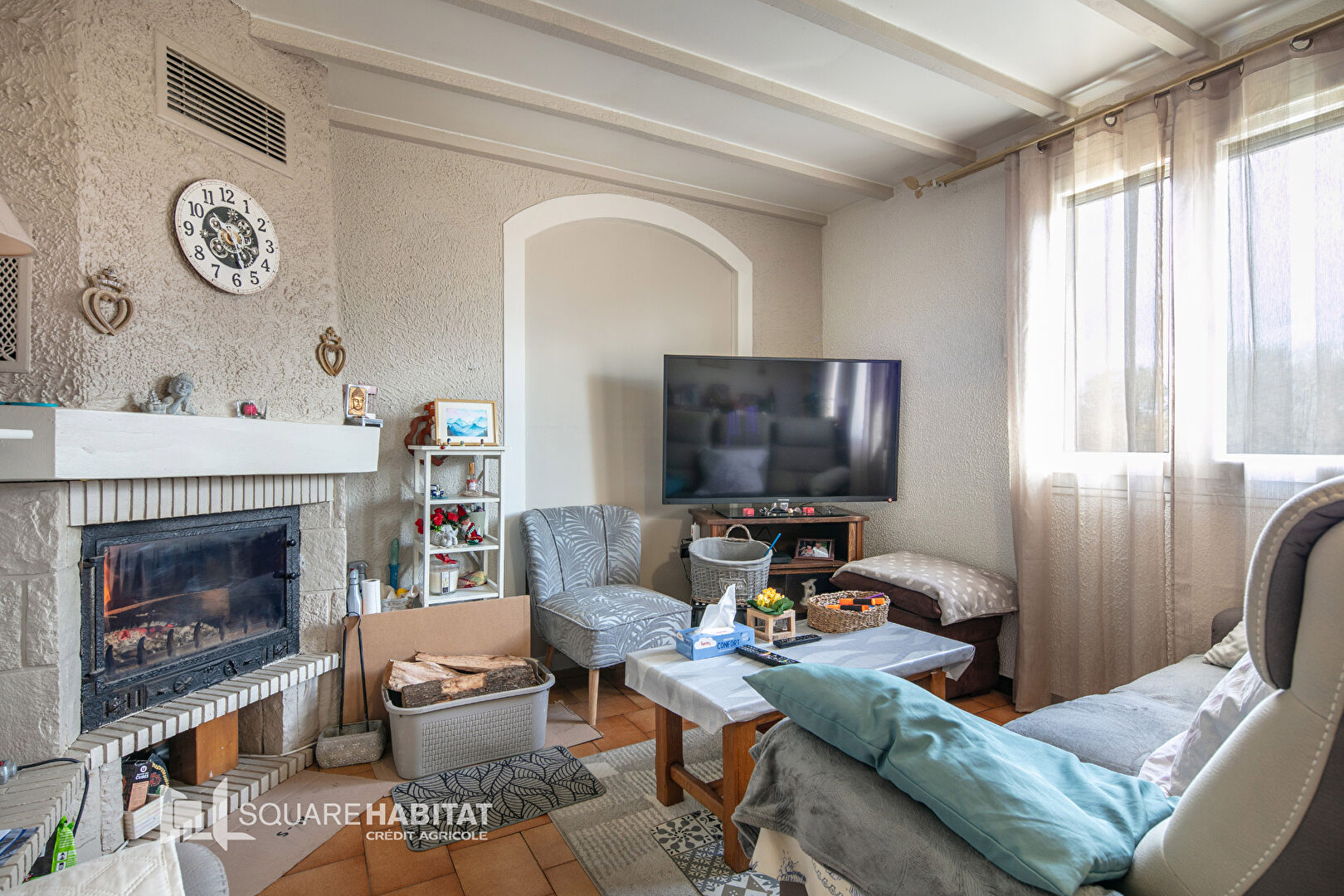 La maison bénéficie d'un chauffage mixte bois et gaz, ainsi que d'une isolation par l'extérieur, garantissant un bon confort thermique (DPE : D).