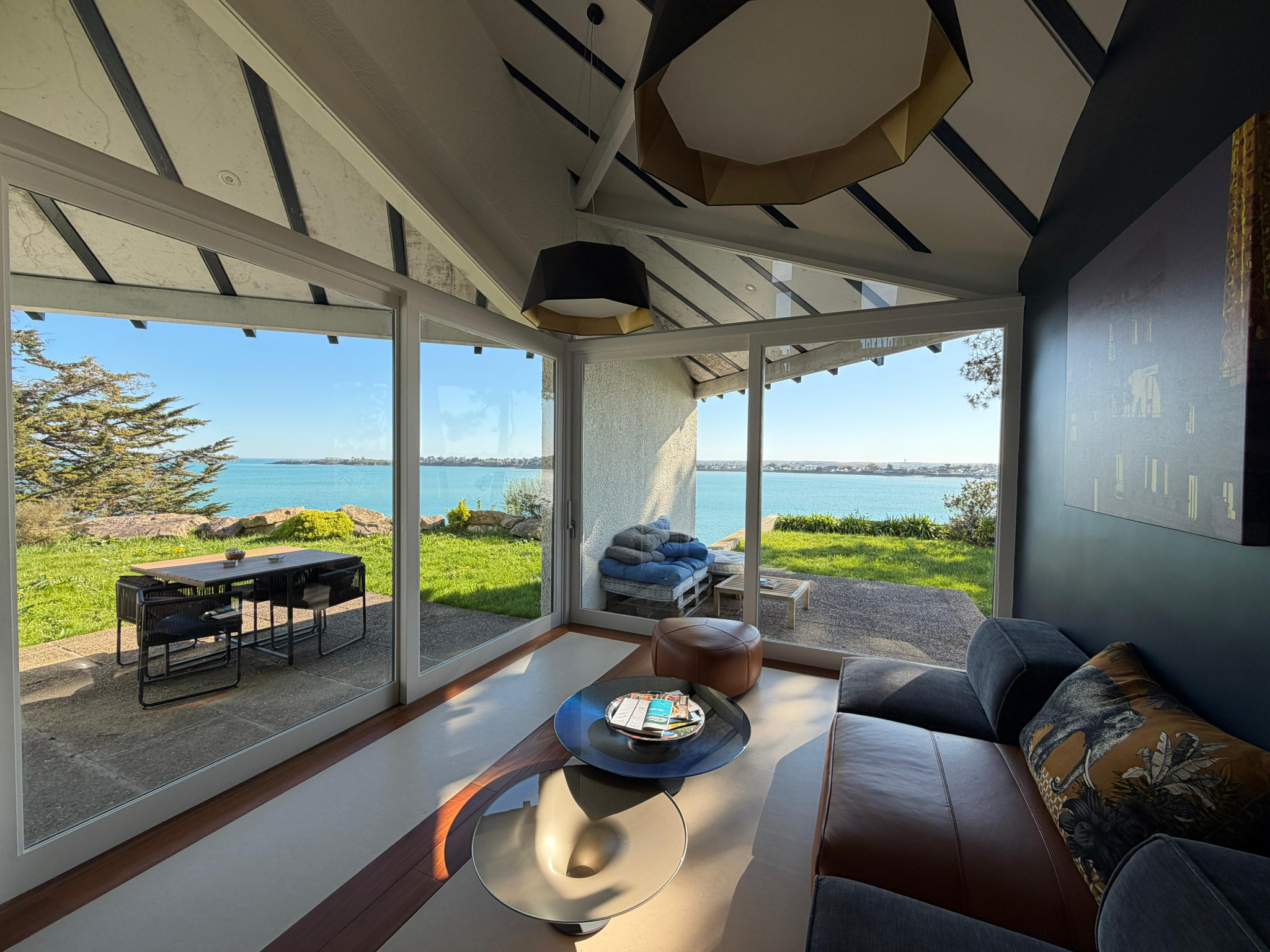 ARMOR CONSEIL IMMOBILIER - Geofffrey PERRÉE vous propose cette somptueuse maison d'architecte entièrement rénovée, suspendue entre ciel et mer., offrant un cadre de vie absolument unique, en première ligne sur la falaise, avec une ve panoramique à couper le souffle sur la baie.