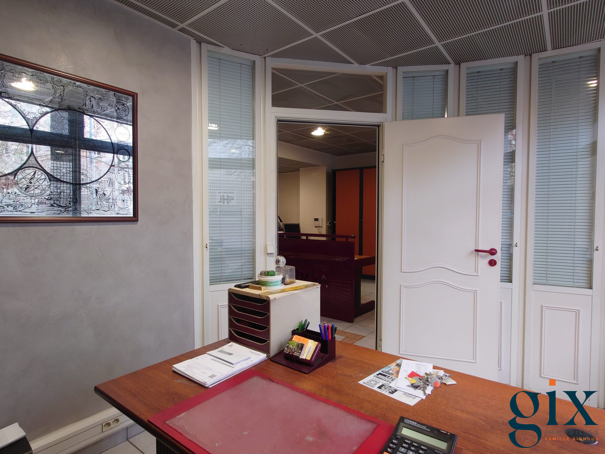 GRENOBLE ÎLE VERTE Local commercial d'environ 70m² avec une vitrine sur le cour Maréchal Randon, un accueil d'environ 23m², deux bureaux de 10,30 m² et 32,63 m² et une salle d'eau avec WC de 3,10m². En annexe une cave et une place de parking.