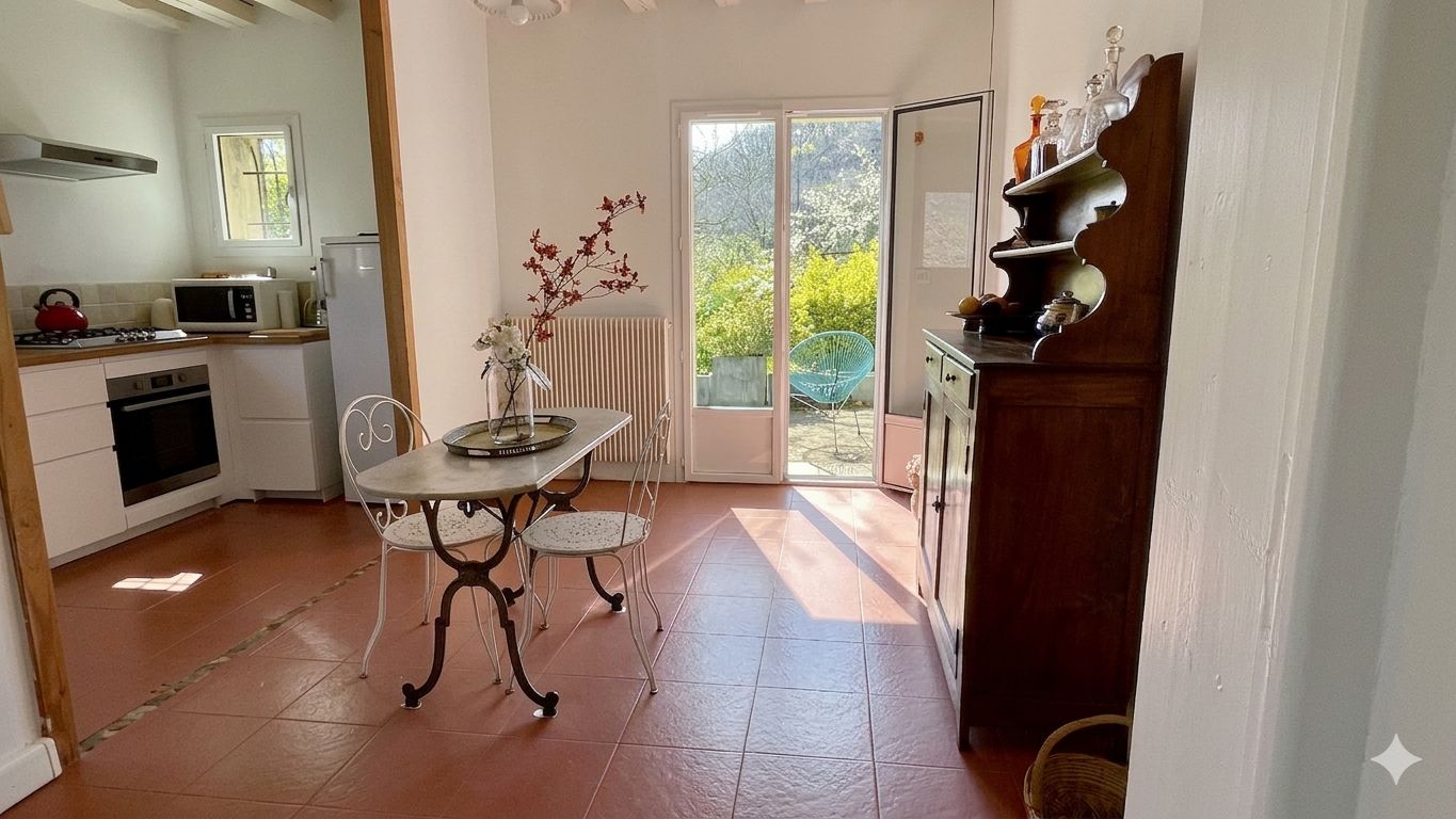 La maison se compose de deux chambres, d'une magnifique véranda, d'un salon chaleureux avec cheminée et d'une cuisine aménagée au charme certain. Côté équipements, ce bien est parfaitement doté pour votre confort : un four à pizza, un barbecue, ainsi que deux panneaux solaires pour la production d'eau chaude et un système de chauffage à pellets avec silo.