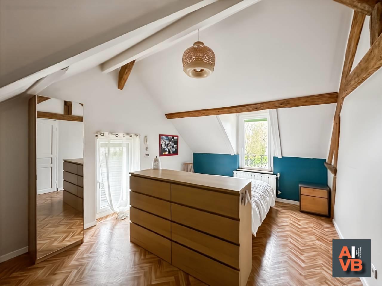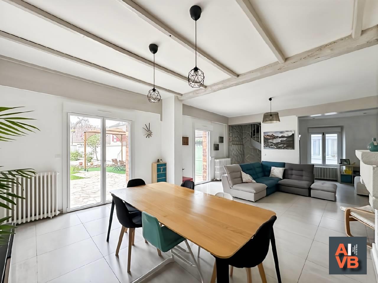 Secteur du Vieux Bussy, A 15 mn à pied du Centre Ville et du RER A, Maison Briarde de 136m2 habitable (155m2 Utiles) entièrement rénovée avec goût et Jardin de 380m2 exposé OUEST.