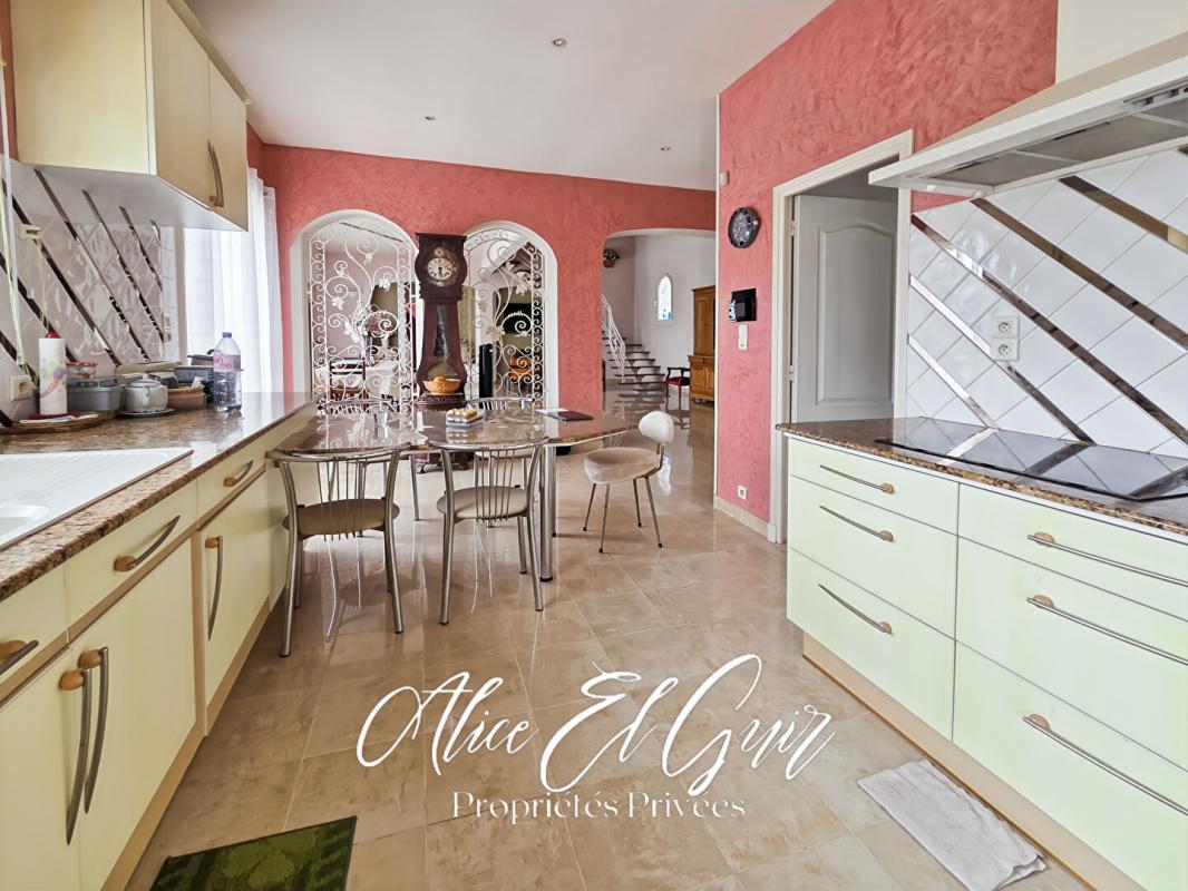 Cuisine aménagée équipée semi-ouverte sur un vaste salon/séjour hyper lumineux avec ses très larges baies vitrées donnant sur une spacieuse terrasse ainsi que la piscine - 4 chambres, 2 SDE, 1 SDB, 4 WC - Buanderie