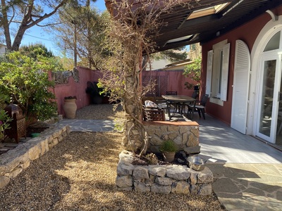 Charmante maison de plain-pied nichée sous de magnifiques pins parasols, située à La Capte, en pleine propriété au sein d'une copropriété horizontale de seulement 2 lots (villas dos à dos).