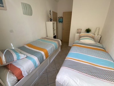 Ce bien se compose de deux chambres confortables et d'un séjour avec cuisine, le tout climatisé pour un confort optimal en toute saison. Vous profiterez également d'une agréable terrasse couverte, idéale pour vos moments de détente en extérieur.