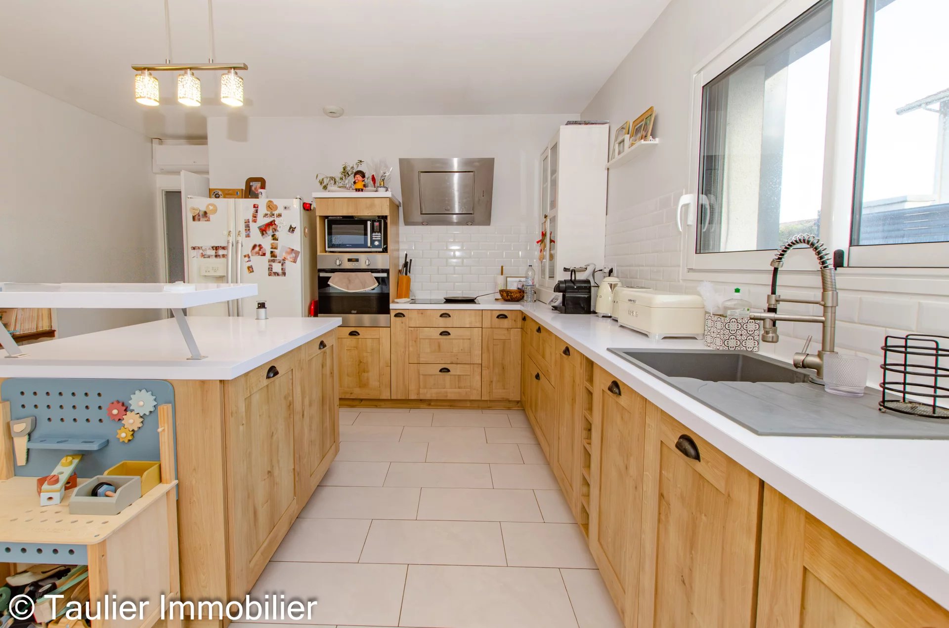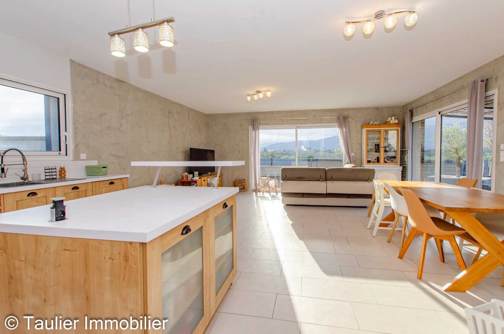 Le cœur de la maison s’articule autour d’un superbe espace de vie de 48 m², baigné de lumière grâce à de larges ouvertures, offrant un cadre de vie convivial et chaleureux.