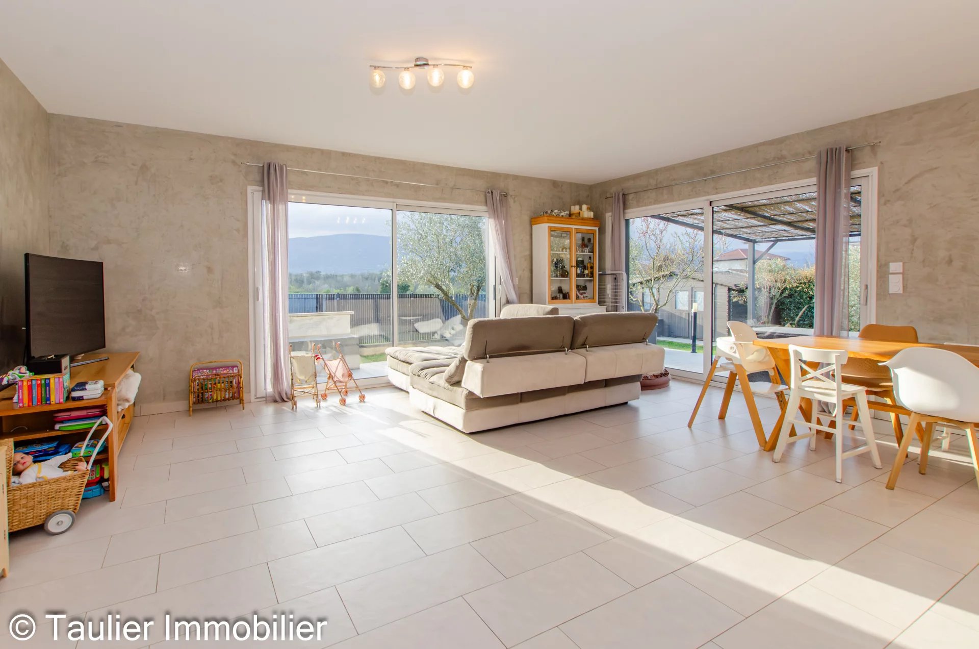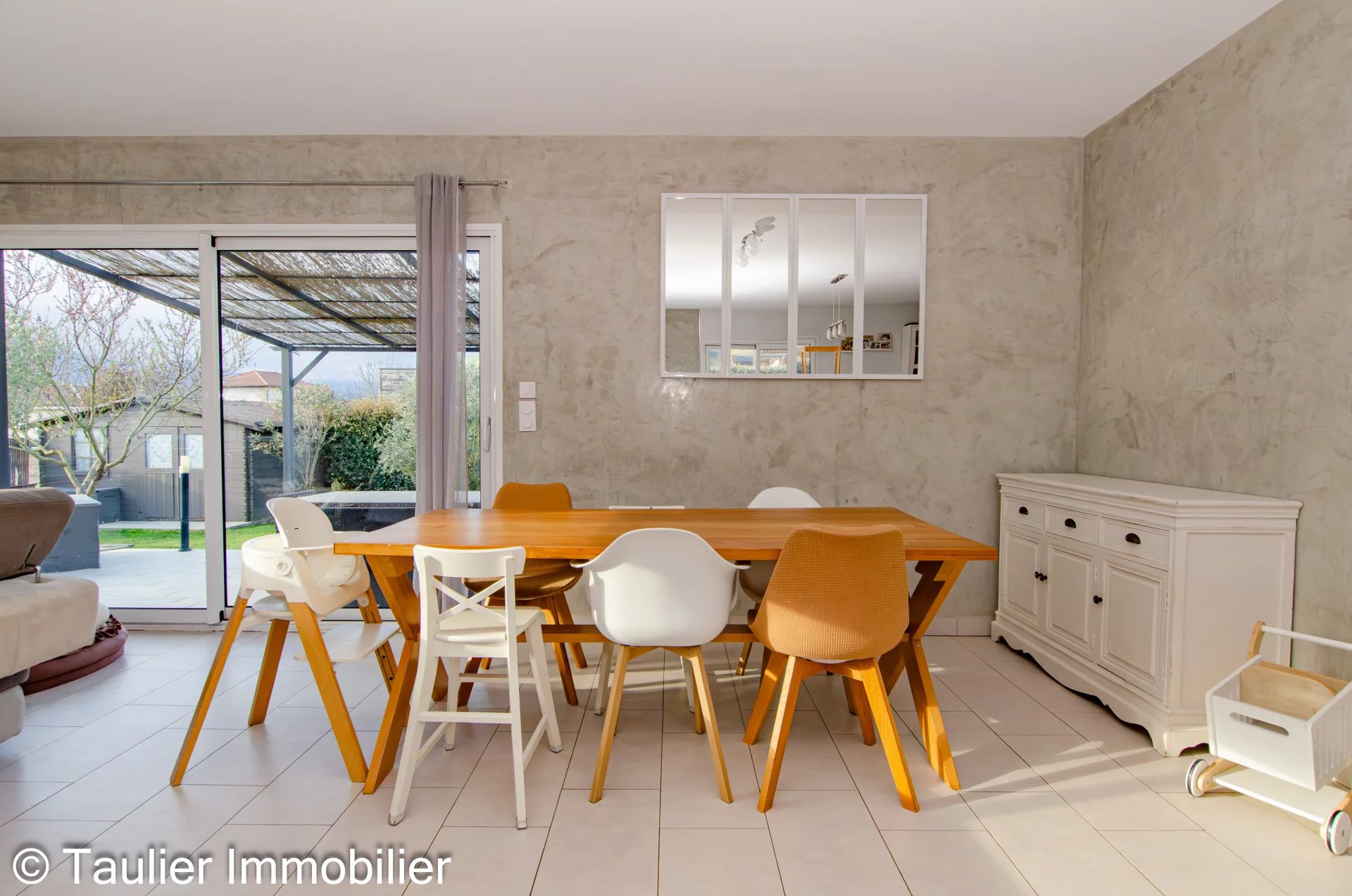 Implantée sur un terrain clos et sans vis-à-vis de 462 m², la propriété dispose d’une belle terrasse avec pergola, parfaite pour profiter des beaux jours.