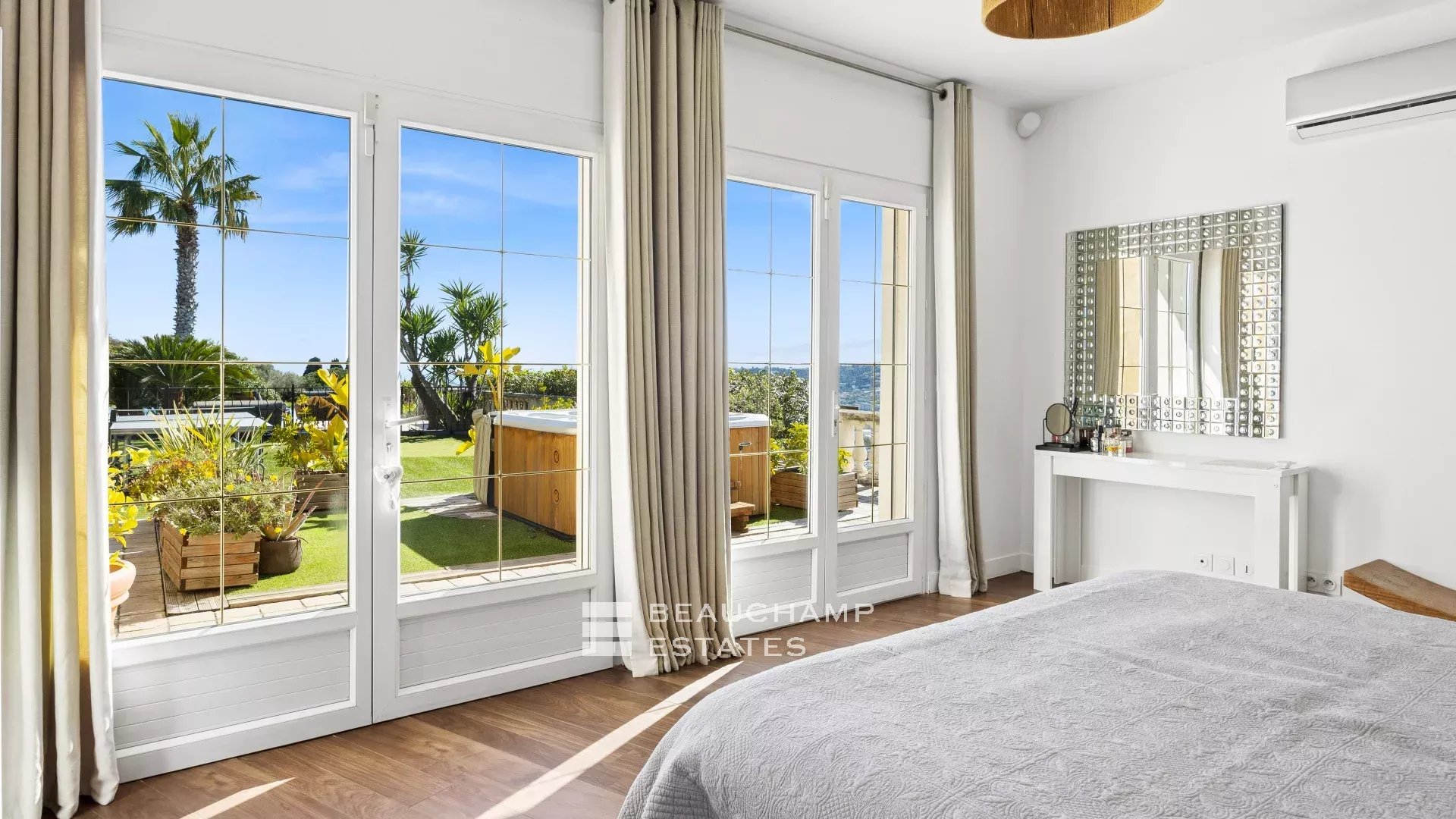 Les extérieurs, parfaitement entretenus, constituent un véritable levier de valorisation : piscine à débordement avec vue panoramique mer, jacuzzi, et espaces paysagers offrant intimité et qualité de vie tout au long de l’année.