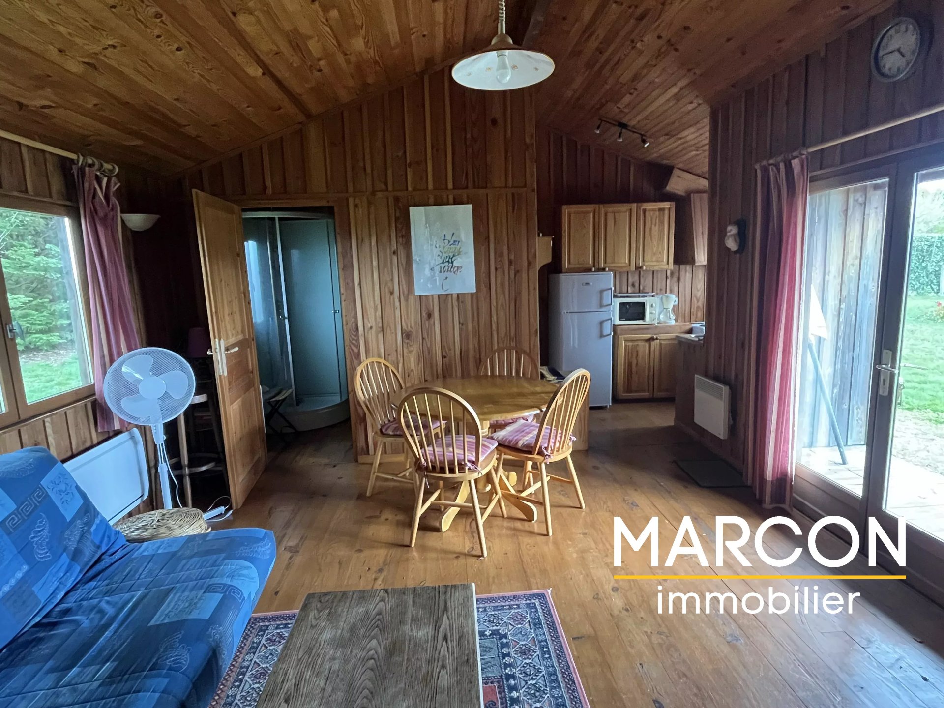 Propriété comprenant 3 chalets de type F3, 2 yourtes et 1 roulotte, idéale pour un projet touristique ou familial.