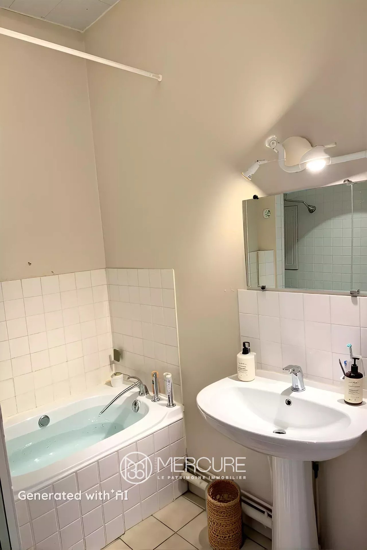 L’appartement dispose également d’une salle de bain avec baignoire ainsi que de WC séparés, apportant un confort supplémentaire au quotidien. Le chauffage est électrique et les fenêtres sont en double vitrage.