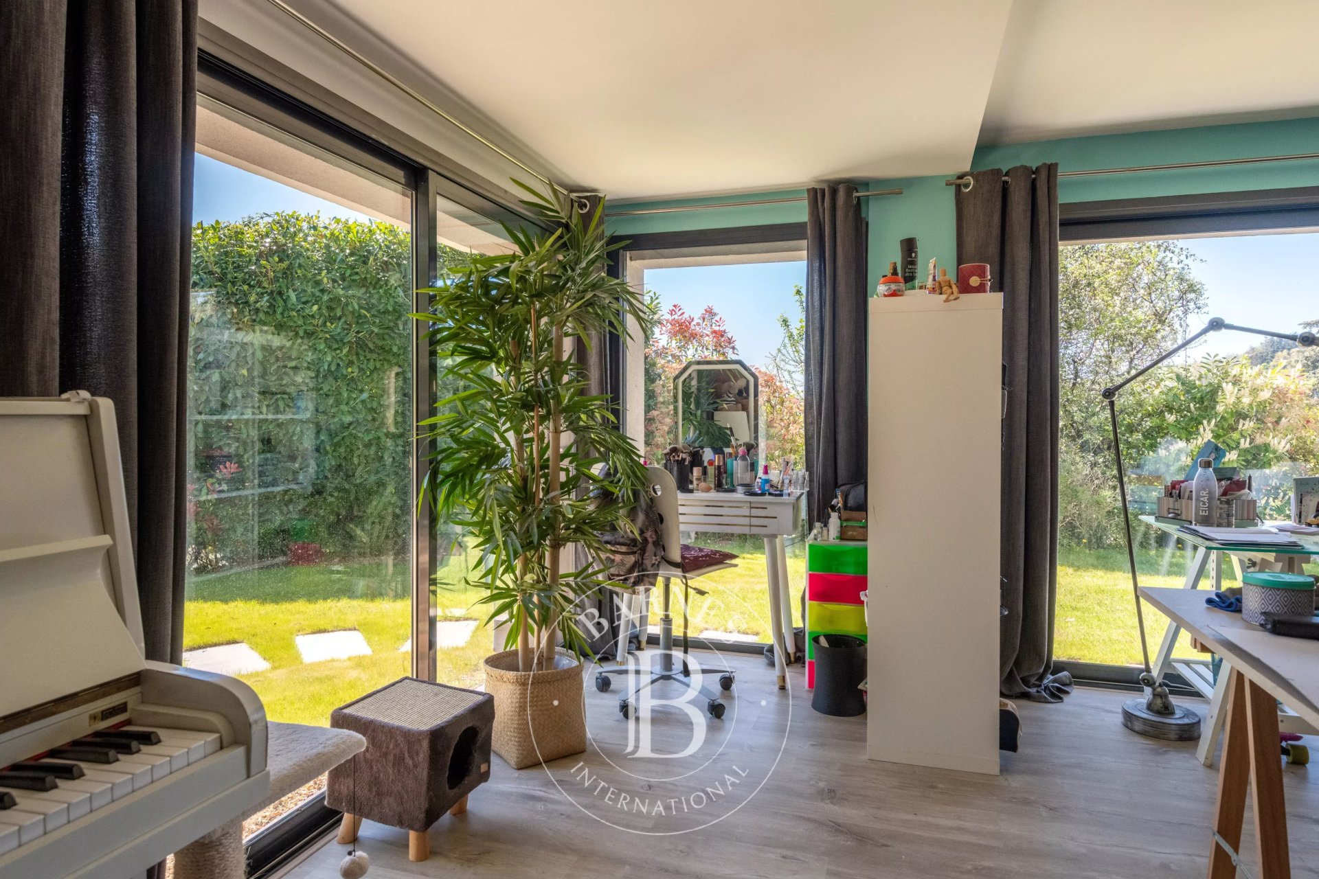 Sur ce même niveau, vous trouverez une agréable suite parentale, avec un accès direct sur la terrasse de la piscine, comprenant une salle de bains, un dressing ainsi qu’un bureau.