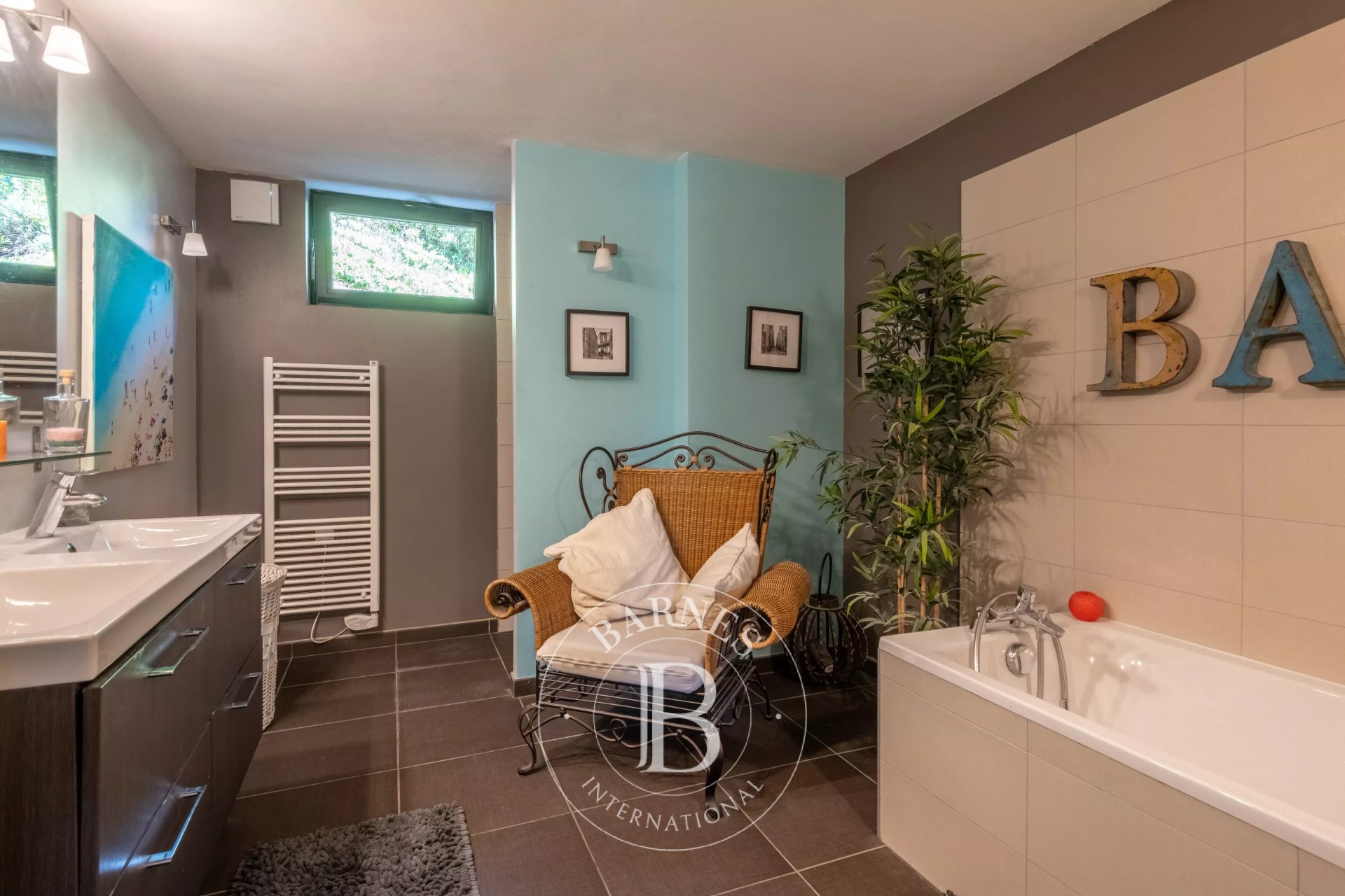 En rez-de-jardin, trois belles chambres se partagent une salle d’eau. Une buanderie et une cave à vins viennent compléter ce niveau.