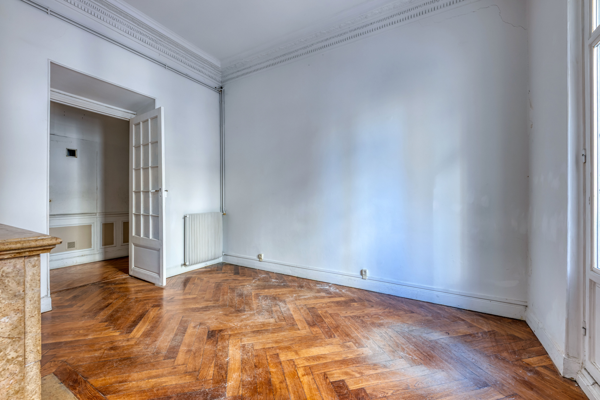 VERDI : Dans un immeuble bourgeois de très bon standing, 4 pièces en rez-de-chaussée à rénover. 77m2 + 10m2 environ local mitoyen (possibilité d'ouvrir). Très belle hauteur sous plafond, parquet, cheminée décorative et volumes agréables.Ce bien conviendra parfaitement à un projet de local professionnel.La façade de l'immeuble ainsi que les parties communes seront entièrement rénovées aux frais du vendeur -- un véritable atout pour valoriser ce bien.
