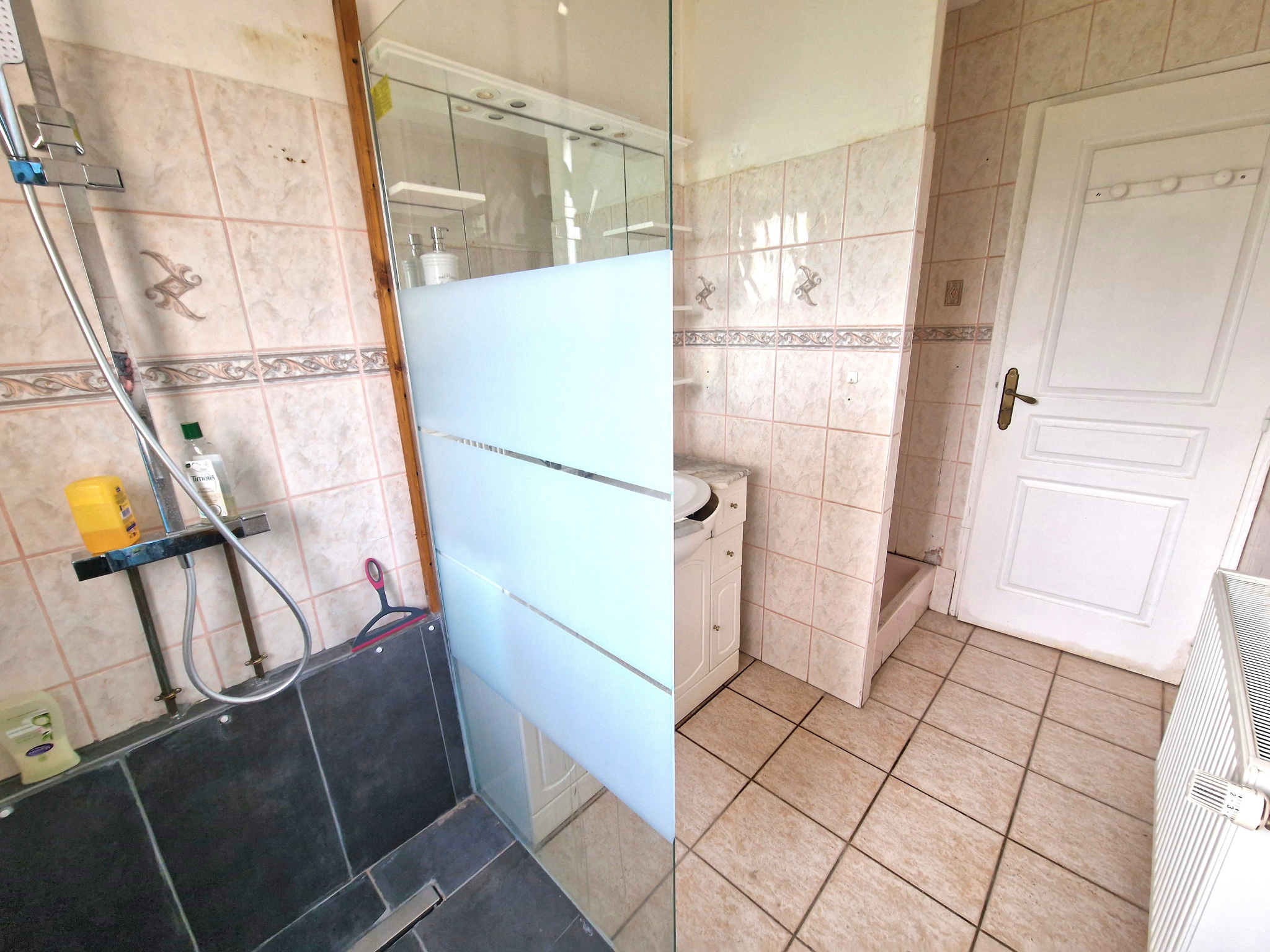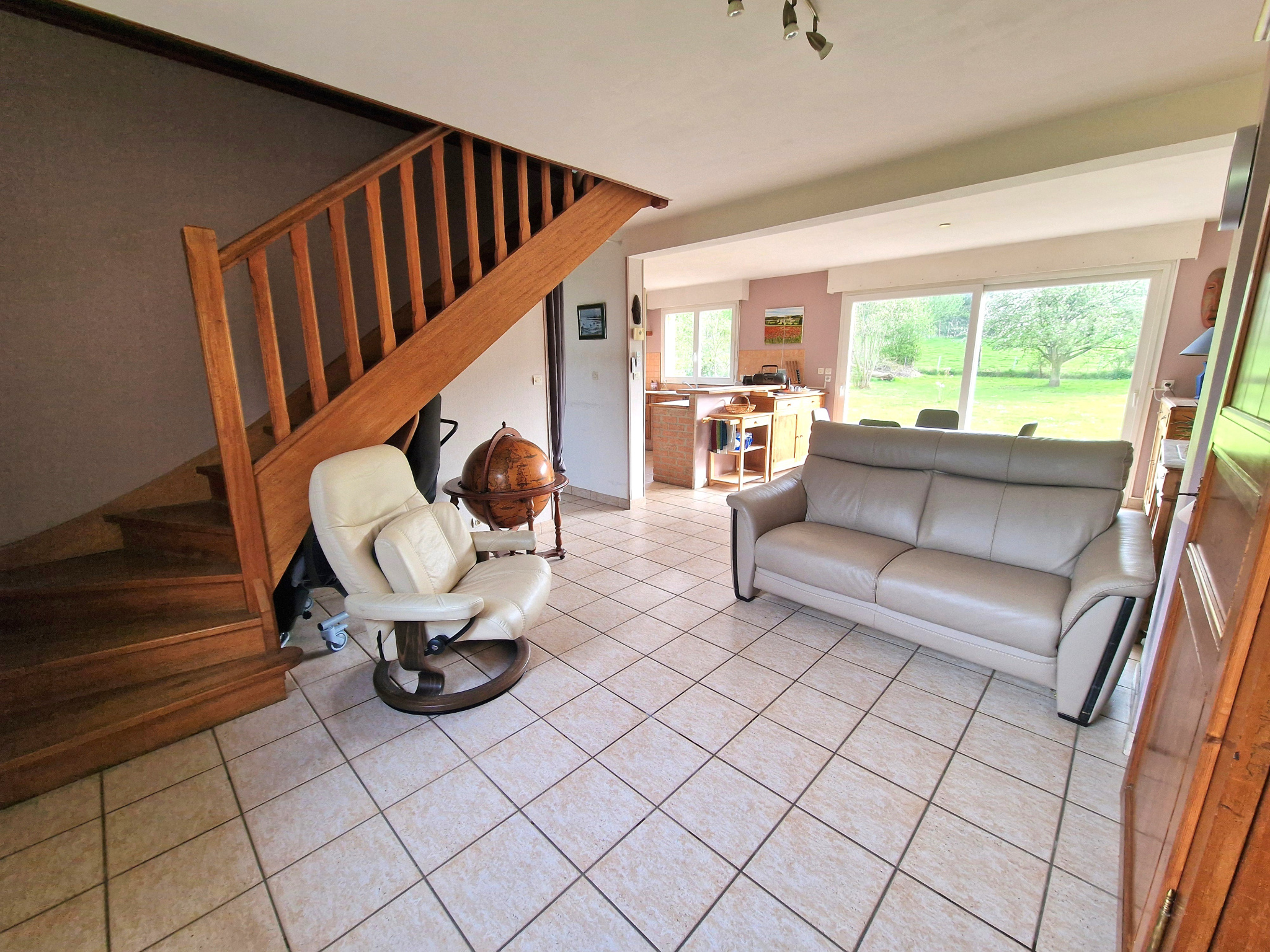 Sur le plan technique, les menuiseries sont en PVC double vitrage, les volets roulants sont manuels avec un volet roulant électrique pour la baie vitrée, le chauffage est assuré par une chaudière au fioul alimentant un chauffage central (brûleur remplacé en 2025 et pompe changée en 2024), complétée par une pompe à chaleur air/air réversible installée il y a deux ans avec un split situé dans le séjour. La production d'eau chaude est assurée par un cumulus électrique, une VMC est présente mais prévoir son remplacement, et un conduit de cheminée est en attente dans le séjour. L'assainissement est actuellement individuel par fosse, le raccordement au tout-à-l'égout étant disponible depuis 2025 (prévoir le raccordement).