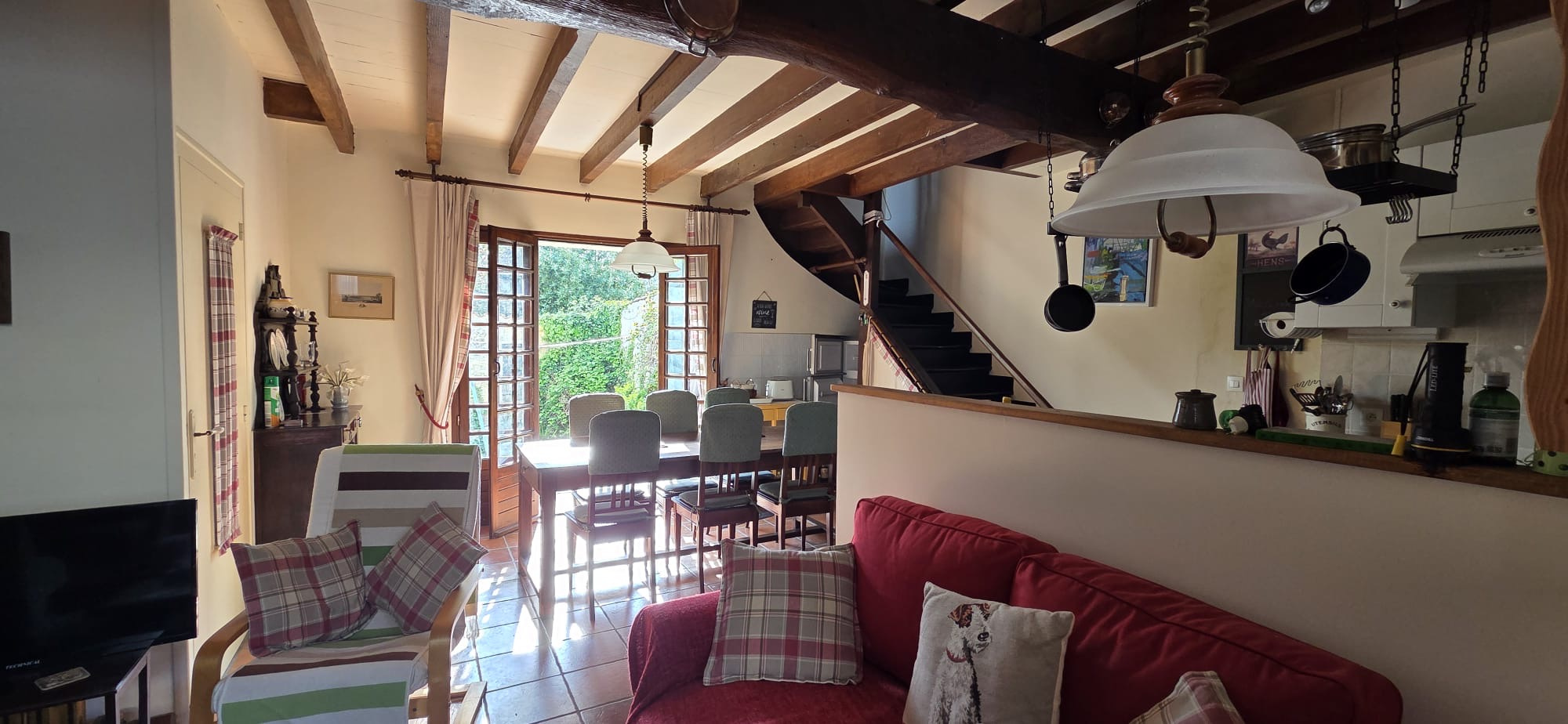 Venez découvrir, uniquement dans votre agence LG IMMO Cabinet Garéché, ce cocon qui vous fera vous sentir comme dans une maison de vacances de 74 m2, à deux pas du port de Mortagne-sur-Gironde et de ses animations. Au coin d'une petite ruelle, cette maison vous propose, au rez-de-chaussée, une entrée donne sur une pièce de vie d'environ 45 m2 comprenant un espace cuisine aménagée, un salon avec poêle à bois et une salle à manger, ainsi qu'une pièce comprenant un WC servant également de buanderie. À l'étage, accessible par un escalier en bois et desservi par un palier mène à deux chambres de 12,20 m2 et 10,90 m2, un bureau de 7,55 m2, ainsi qu'une salle d'eau avec WC. Pour profiter des belles journées ensoleillées, une grande terrasse close, accessible depuis la pièce de vie, accueillera idéalement une table pour partager de bons moments. Le chauffage est assuré par un poêle à bois. L'assainissement est individuel, par une fosse étanche. Les menuiseries sont en bois simple vitrage. De plus, pour compléter ce bien, vous bénéficierez d'un parking non attenant, actuellement loué, ainsi que d'un petit espace de jardin partagé, attenant à la maison et accessible par la terrasse. Si ce bien vous intéresse et que vous souhaitez plus d'informations, contactez-nous au 05 46 97 27 11 ou par mail à cabinet-gareche@lgimmo.net.