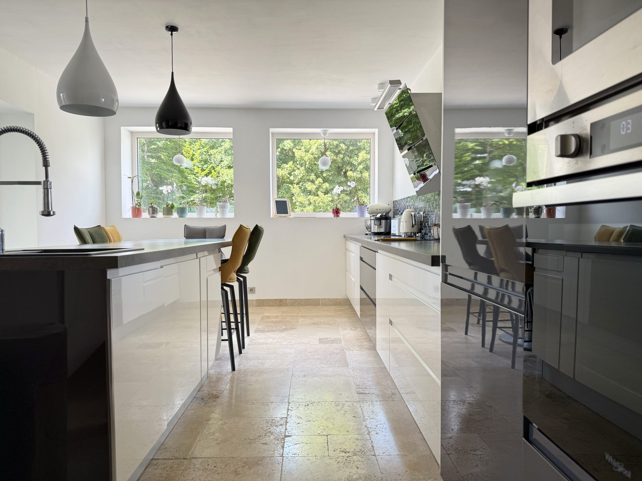 Grande pièce à vivre , cuisine équipée , 4 chambres et 1 bureau , salle de sport , garage 2 voitures + dépendance.