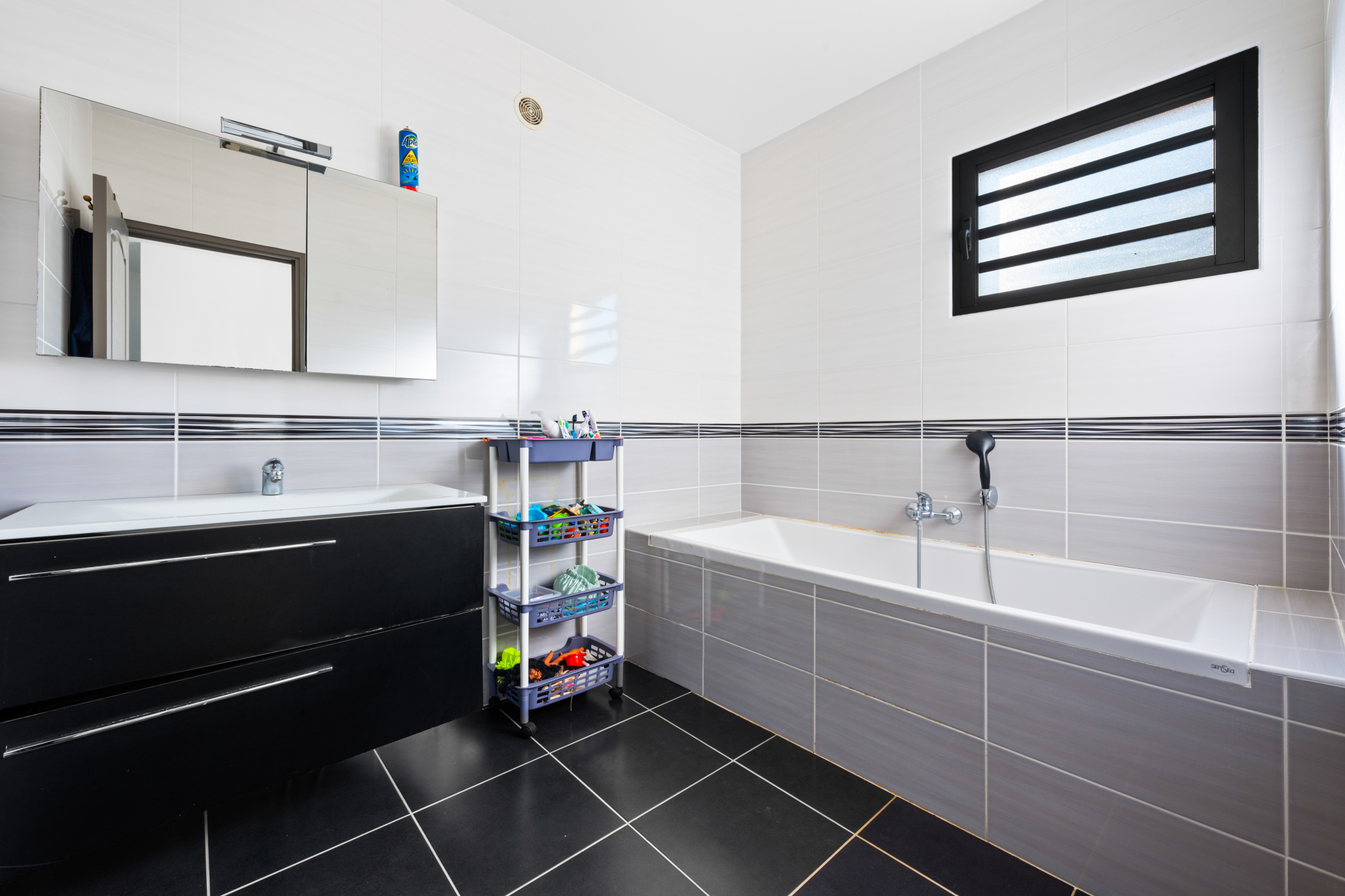 - Au RDC une cuisine ouverte sur un séjour, 2 chambres, une salle d'eau avec WC, une buanderie.