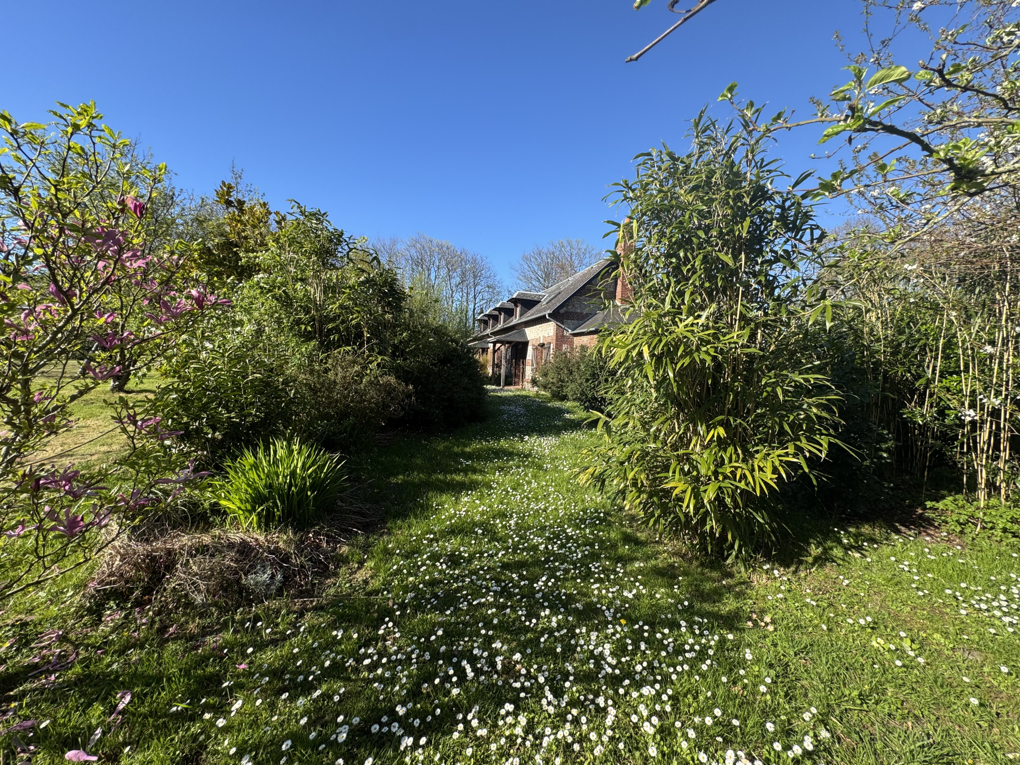La maison, bien que mitoyenne d'un coté, dispose d'un superbe jardin privatif de 1392 m2 entourant complètement la maison.