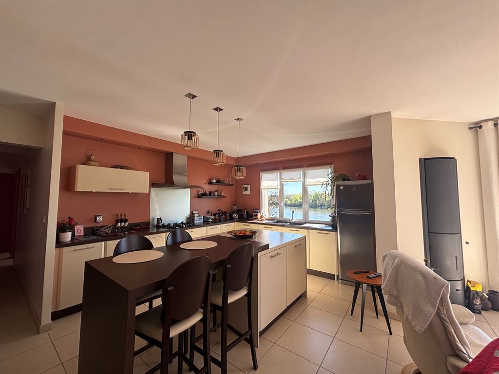Édifiée sur deux niveaux, elle se compose au rez-de-chaussée d’un vaste séjour lumineux avec poêle, ouvert sur une cuisine conviviale, le tout bénéficiant d’une superbe vue sur la Loire. Vous y trouverez également deux chambres, une salle de bains, des WC indépendants, ainsi qu’une lingerie et une buanderie/local technique.