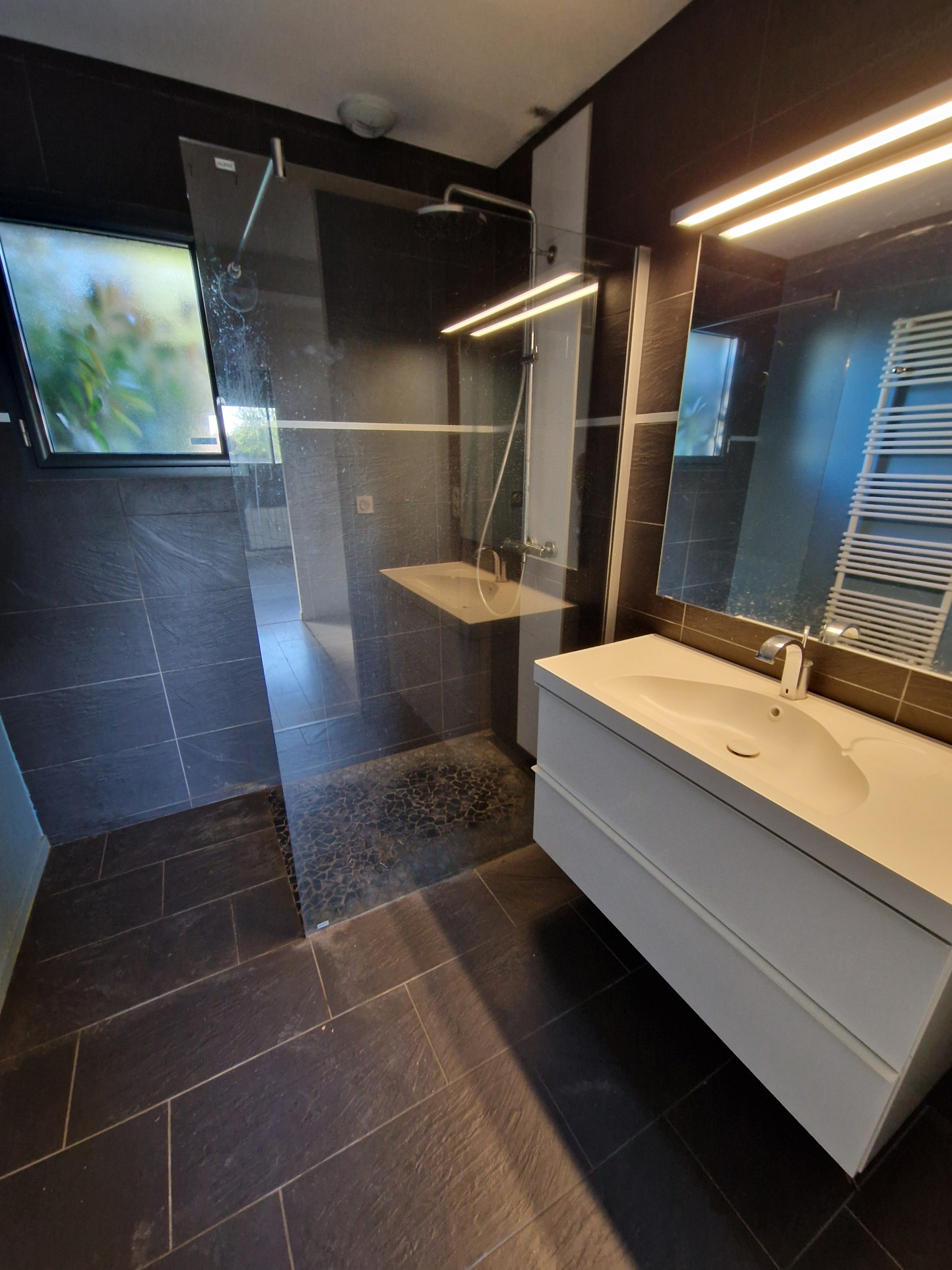 Au rez-de-chaussée : Grand séjour d'environ 50 m2 avec cuisine ouverte semi-équipée, buanderie, dégagement desservant un WC indépendant, une suite parentale composée d'une chambre et d'une salle d'eau avec la possibilité de dressing entre les deux (prévoir l'installation de placards).