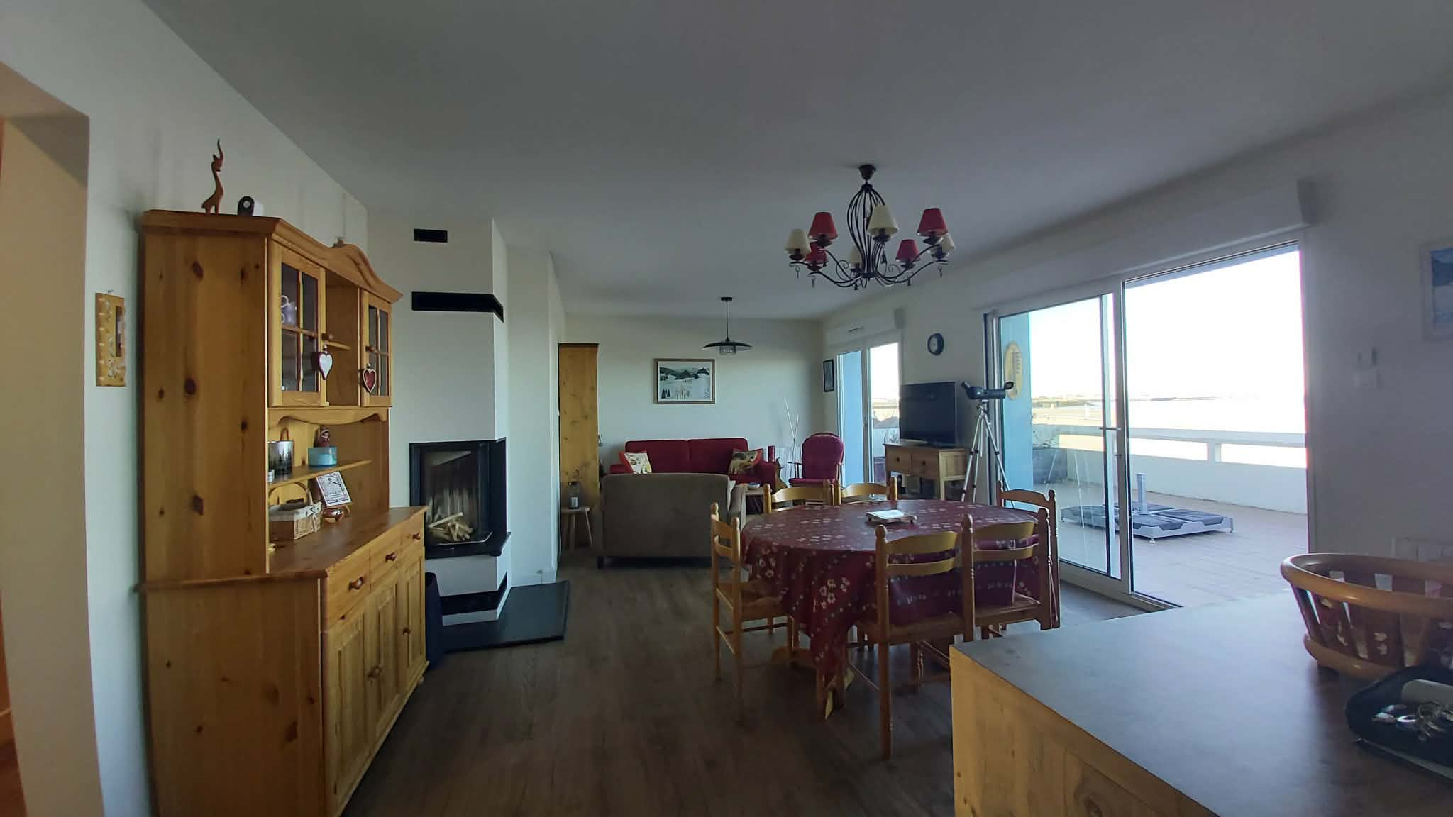 Dès l'entrée, vous découvrirez une spacieuse pièce de vie de plus de 45 m2, baignée de lumière, avec une cuisine ouverte conviviale et une chaleureuse cheminée à feu de bois.