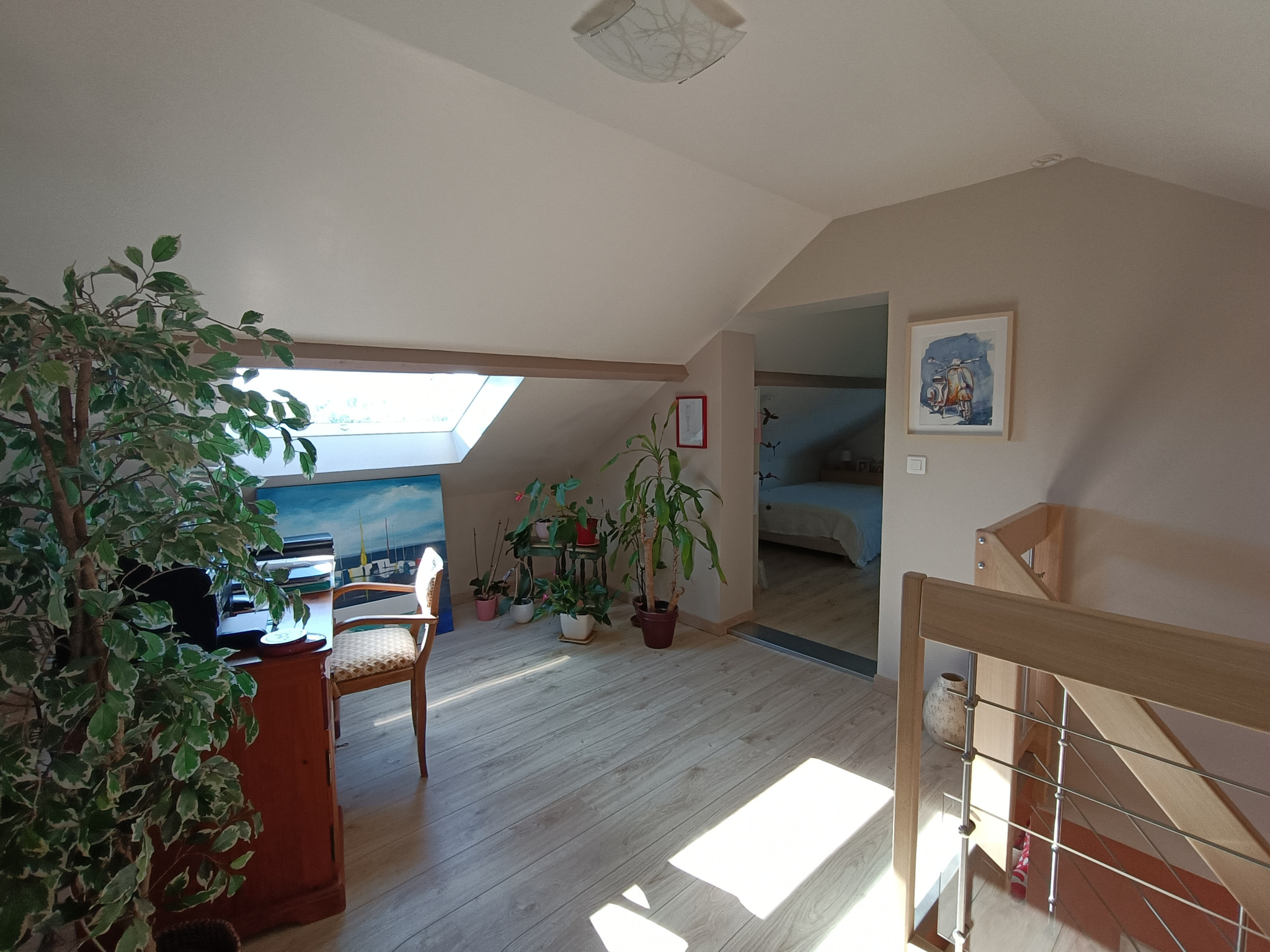 La maison dispose de trois chambres confortables, un palier idéal pour le télétravail et une pièce à aménager selon ses envies et ses besoins.