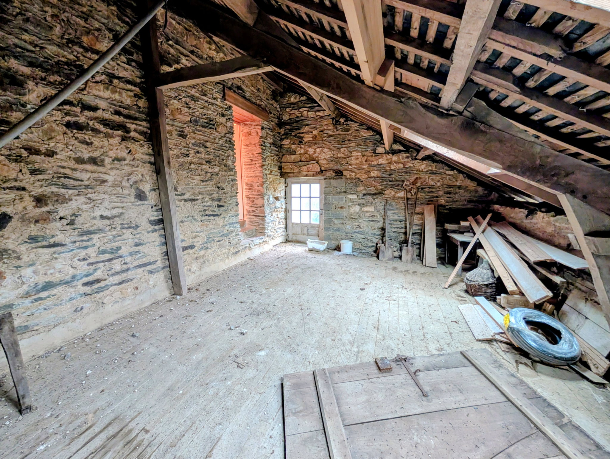 Nous vous faisons découvrir cette charmante maison en pierres et couvert en ardoises, mitoyenne sur un côté, sur une parcelle de terrain d'environ 1 047 m2. Cette habitation est prête à vous accueillir et bénéficie d'une ambiance chaleureuse. Au rez-de-chaussée, vous découvrirez une pièce de vie avec un espace salon agrémenté d'un poêle à bois, ouverte sur une cuisine aménagée. Le premier étage s'ouvre sur un dégagement desservant une salle d'eau avec WC et une chambre. Un accès à un grenier offre un espace de stockage ou un potentiel d'aménagement supplémentaire. Le deuxième étage offre une seconde chambre spacieuse et cosy.