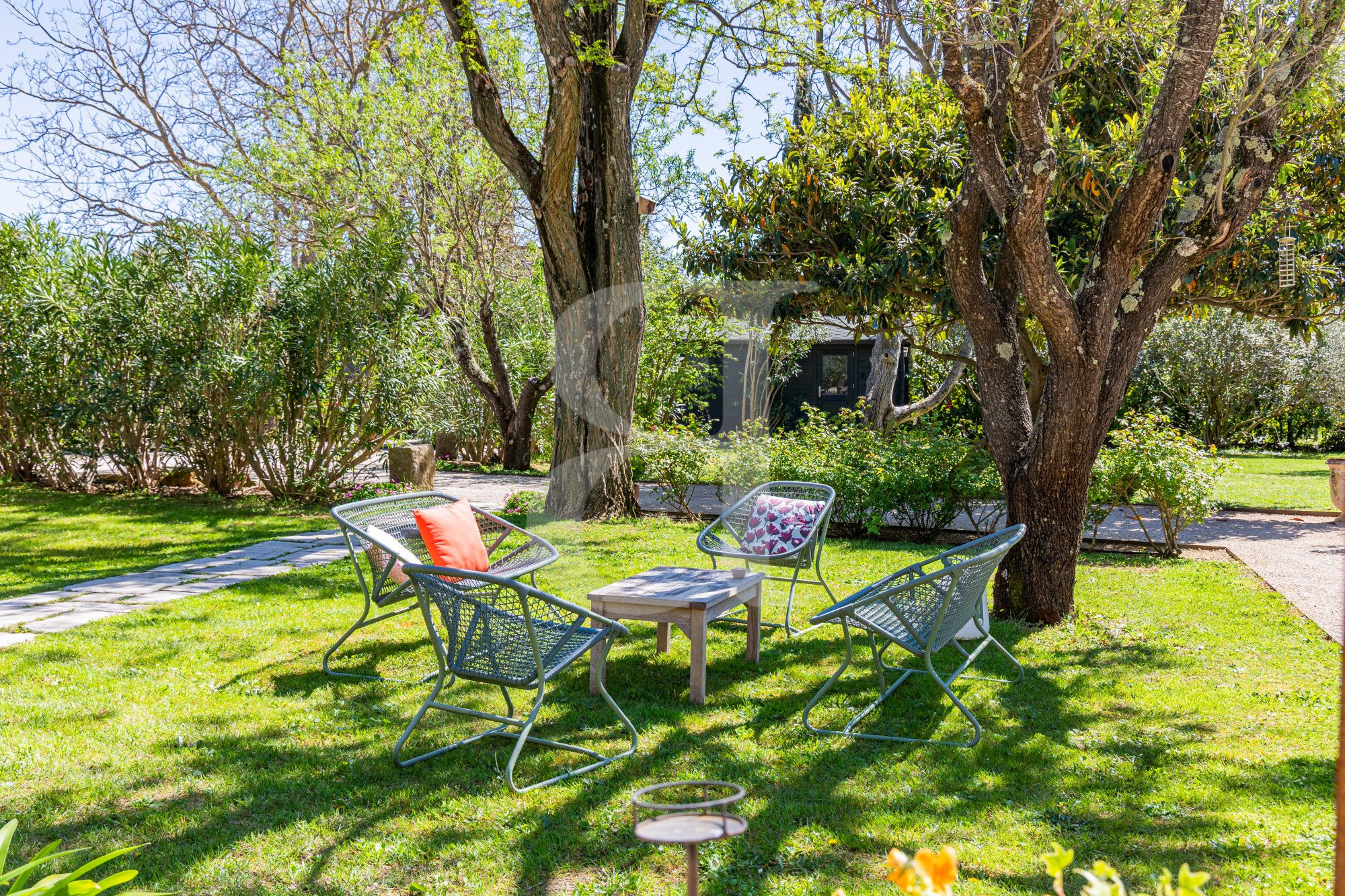 Dès l'entrée, la propriété dévoile des espaces de vie élégants et harmonieux : une cuisine raffinée et spacieuse véritable pièce maîtresse de la maison, une salle à manger accueillante et un salon chaleureux agrémenté d'une cheminée. Le rez-de-chaussée accueille également une belle chambre avec salle d'eau, dressing et accès direct à la terrasse, apportant confort et fonctionnalité.