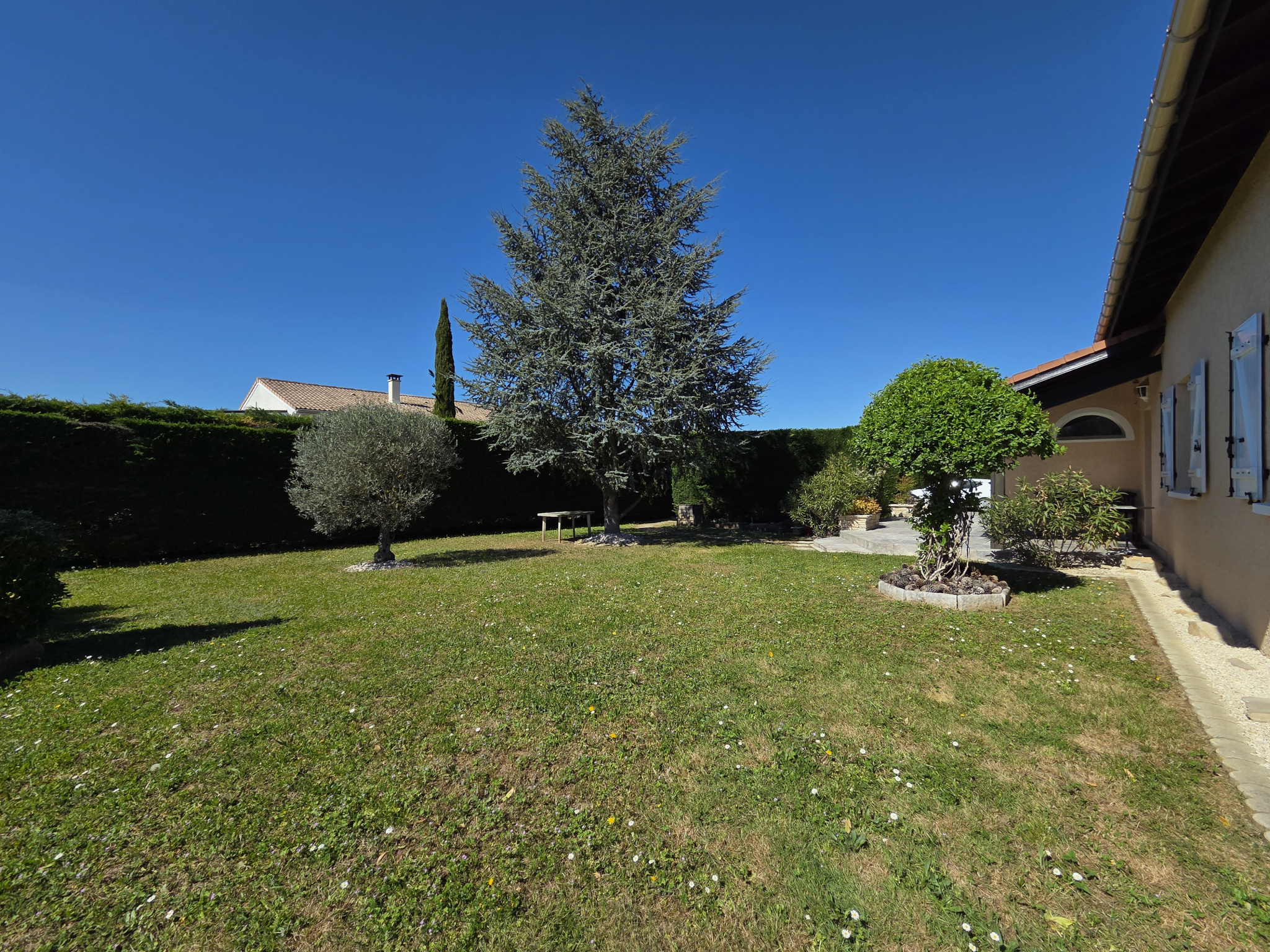 À l'extérieur, vous profiterez d'un cadre agréable et soigné comprenant :
