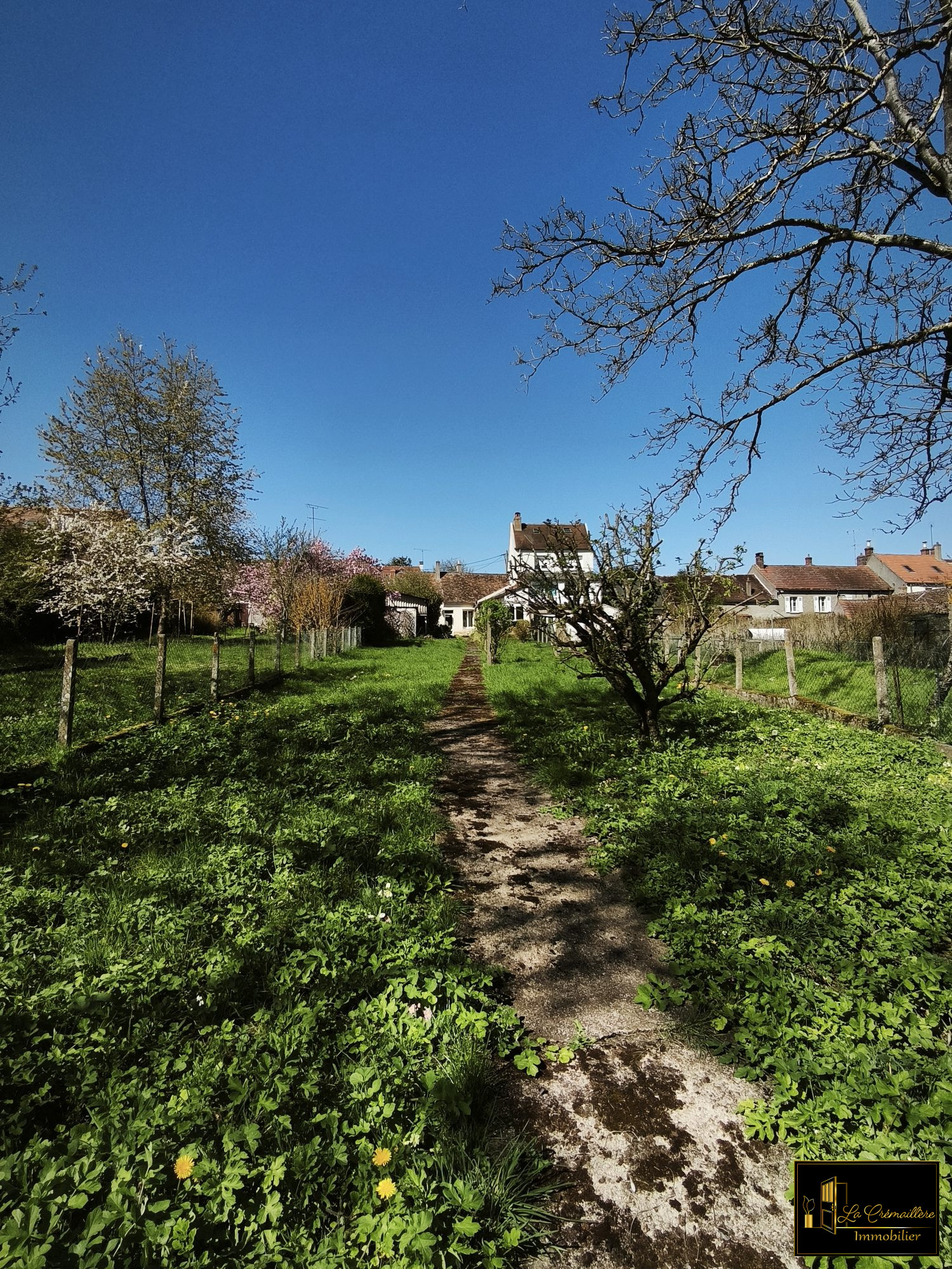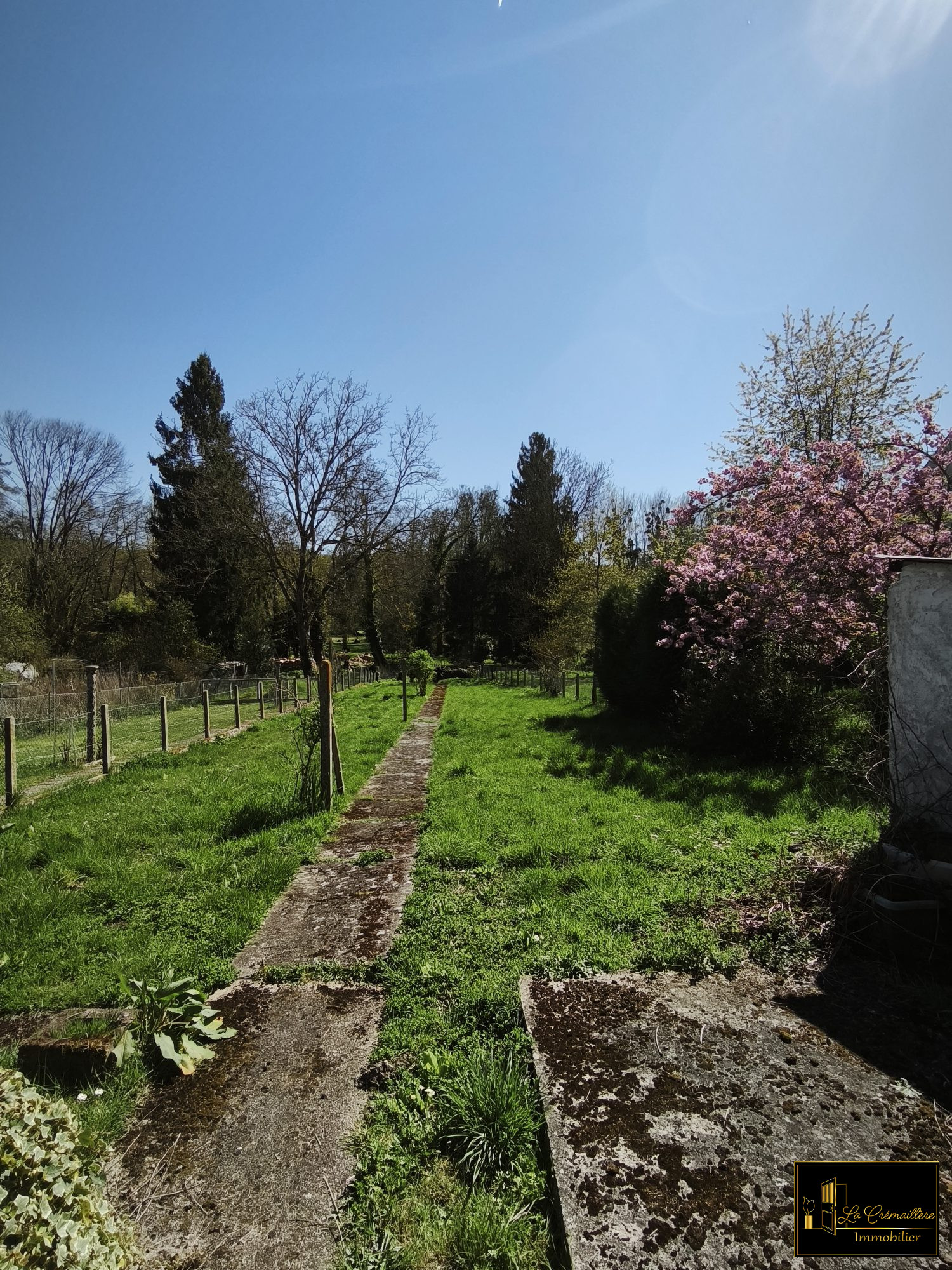 À l'extérieur, vous apprécierez un vaste terrain clos d'environ 800 m², accessible notamment par un garage traversant. Cet espace verdoyant constitue un cadre parfait pour l'aménagement d'un potager, d'un jardin paysager ou d'un espace de détente.