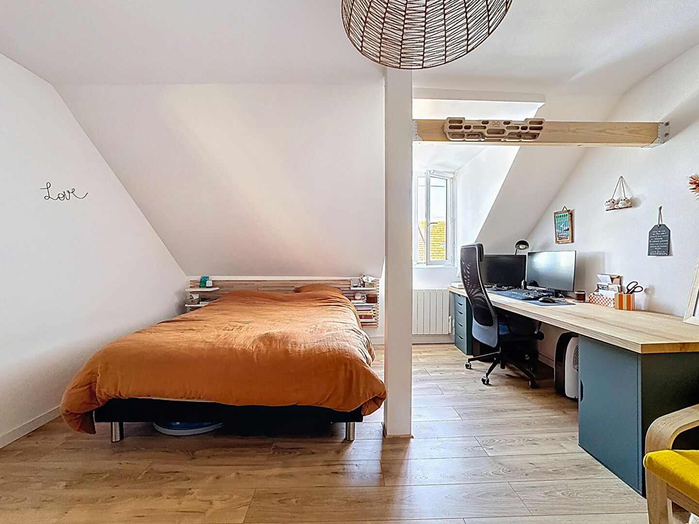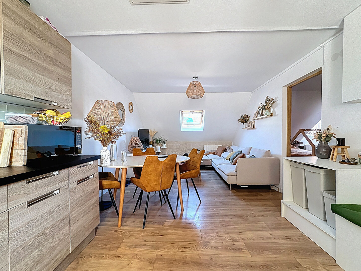 - Un agencement optimisé avec une belle pièce de vie cocooning et traversante
