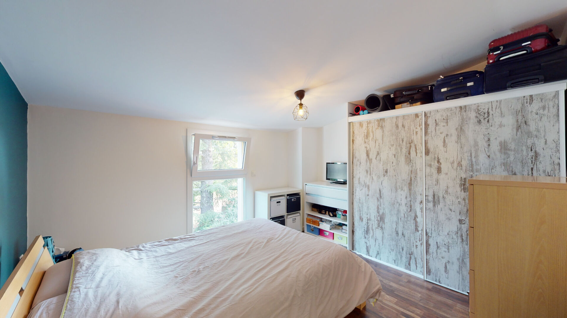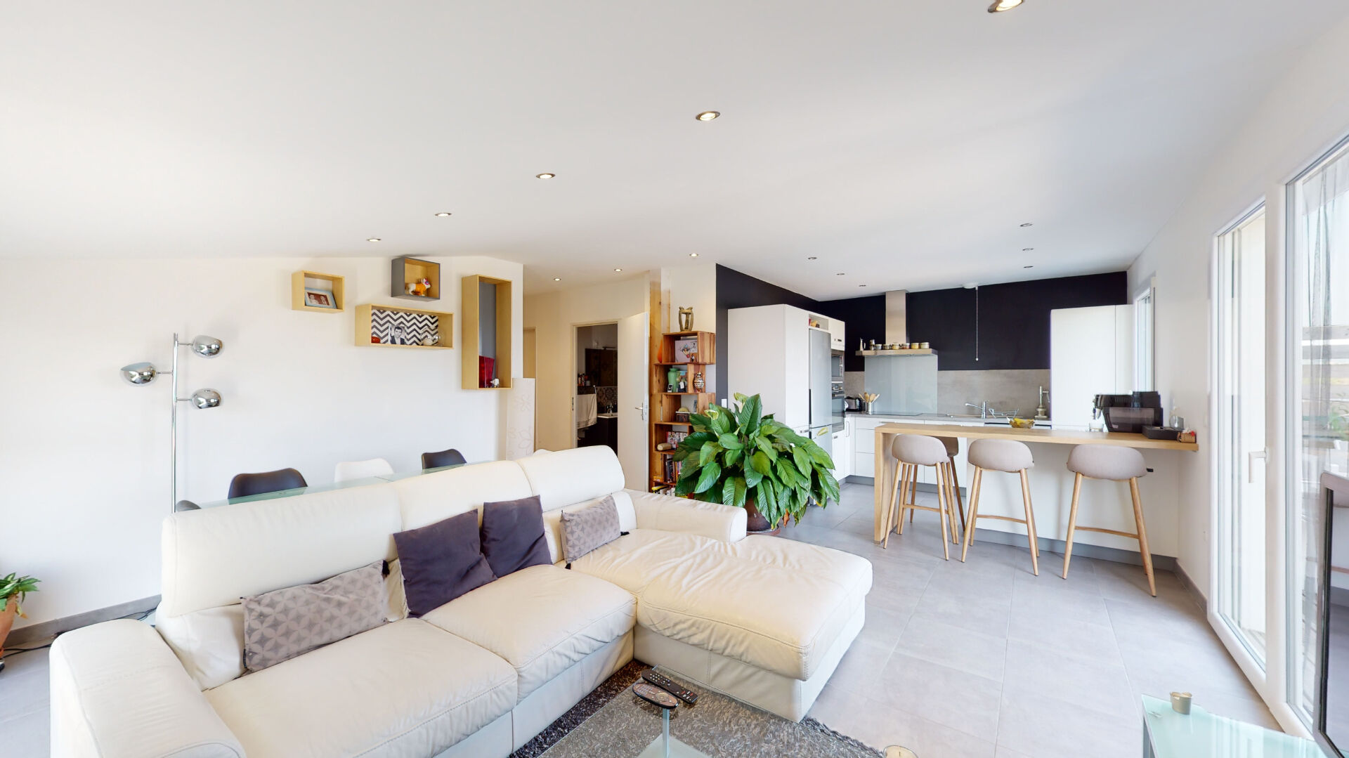 Au deuxième et dernier étage avec ascenseur, ce bien lumineux se compose d'une entrée desservant une agréable pièce de vie incluant un salon-séjour baigné de lumière, avec accès direct à une belle terrasse de 17 m² offrant une vue dégagée sur la nature environnante. La cuisine ouverte, moderne et entièrement équipée, complète harmonieusement cet espace convivial.