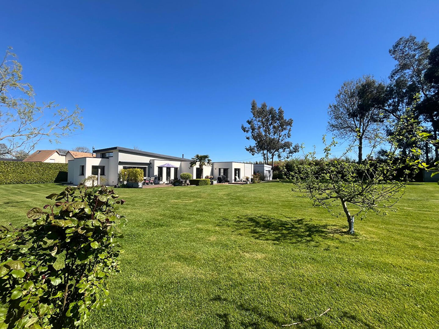 Venez découvrir cette maison d'architecte de plain-pied, alliant volumes, luminosité et confort, idéalement située entre Pont-l'Évêque et Beuzeville.