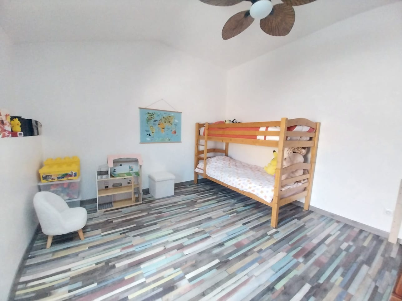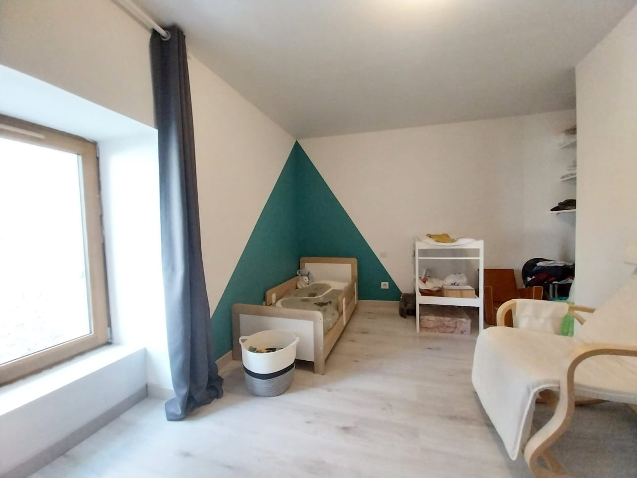 Le deuxième étage accueille une belle chambre mansardée, idéale pour un espace nuit, un bureau ou une salle de loisirs.