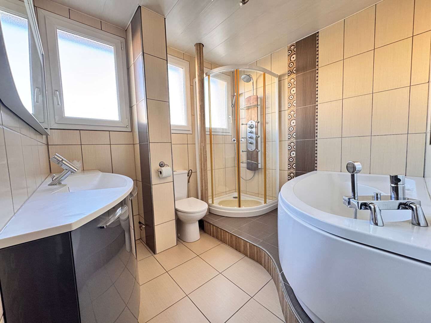 Cuisine aménagée et équipée avec sa salle à manger. 4 chambres dont une avec son salon privatif et son balcon. Salle de bain avec douche et WC, buanderie et WC séparé.
