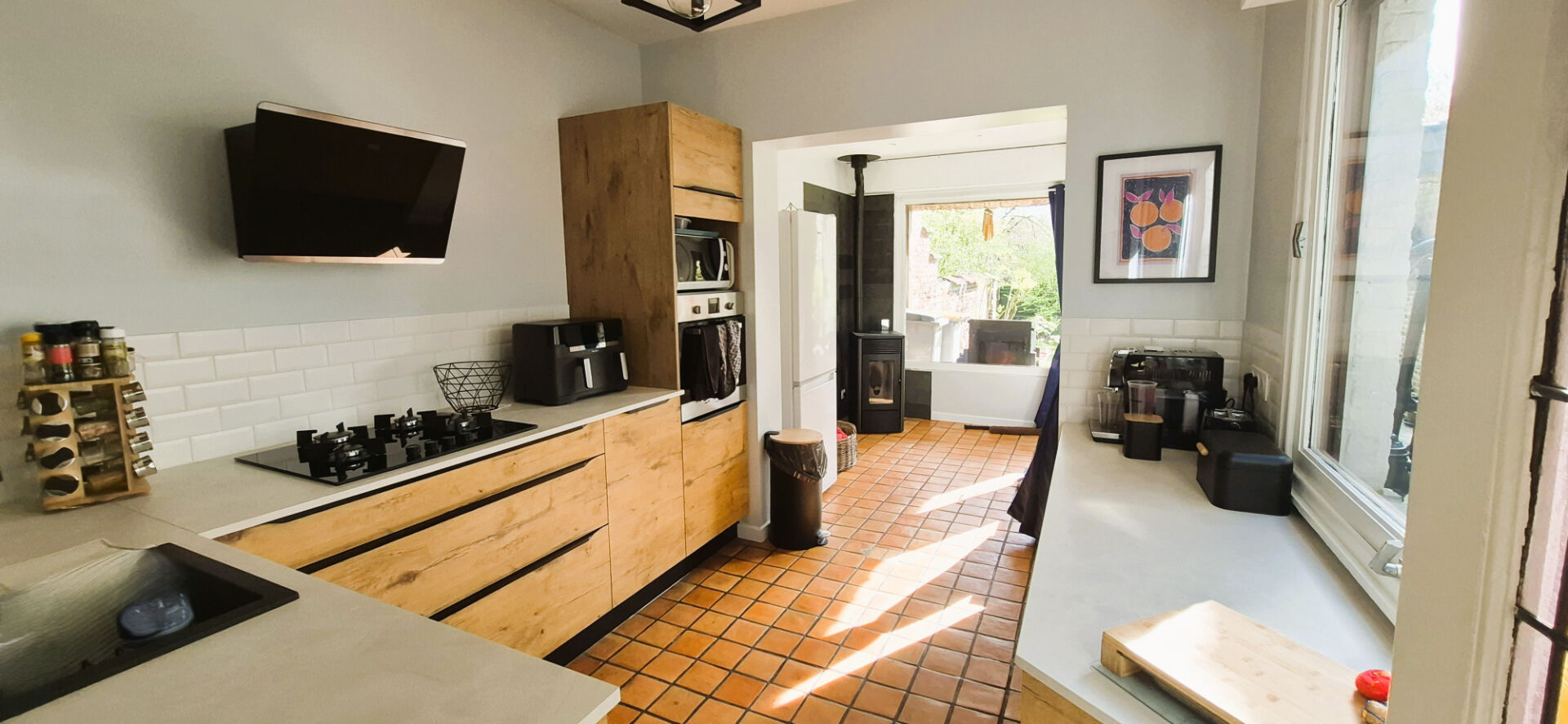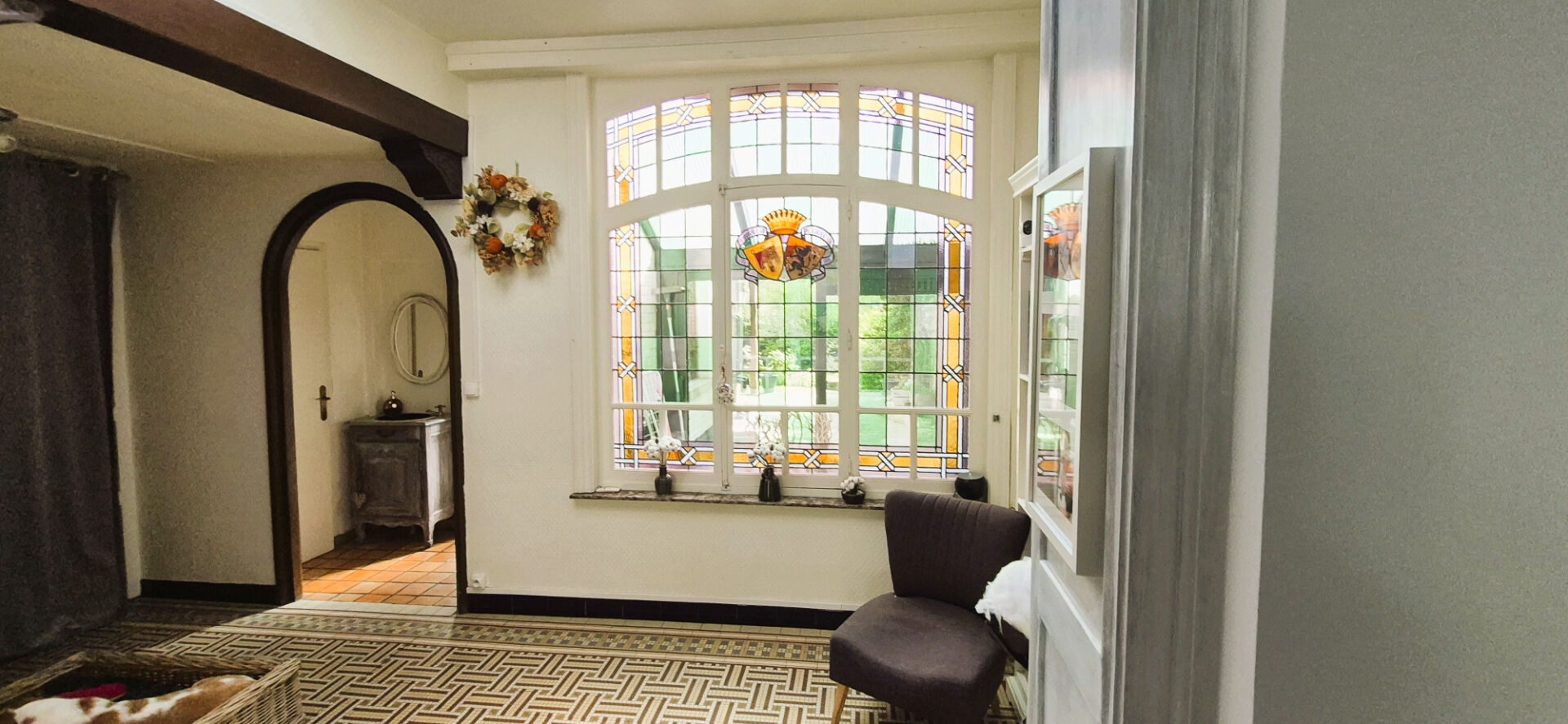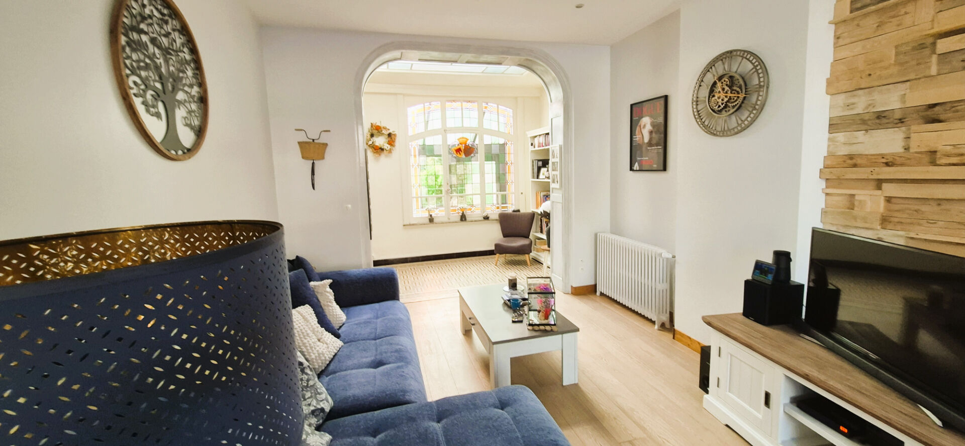 Dès l'entrée, les beaux volumes et la luminosité donnent le ton. La maison offre une atmosphère chaleureuse et authentique, idéale pour une vie de famille confortable.
