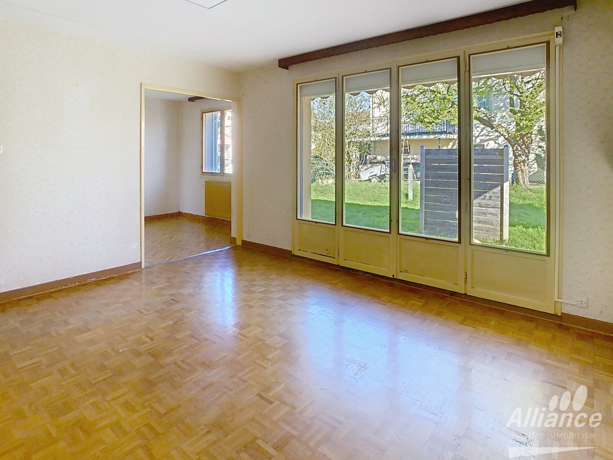 ALLIANCE GROUPE IMMOBILIER à Delle vous propose cette maison à rénover de 5 pièces. Elle comprend : une entrée, cuisine non équipée, séjour double avec porte-fenêtre sur terrasse, trois chambres, salle d'eau récente, wc.