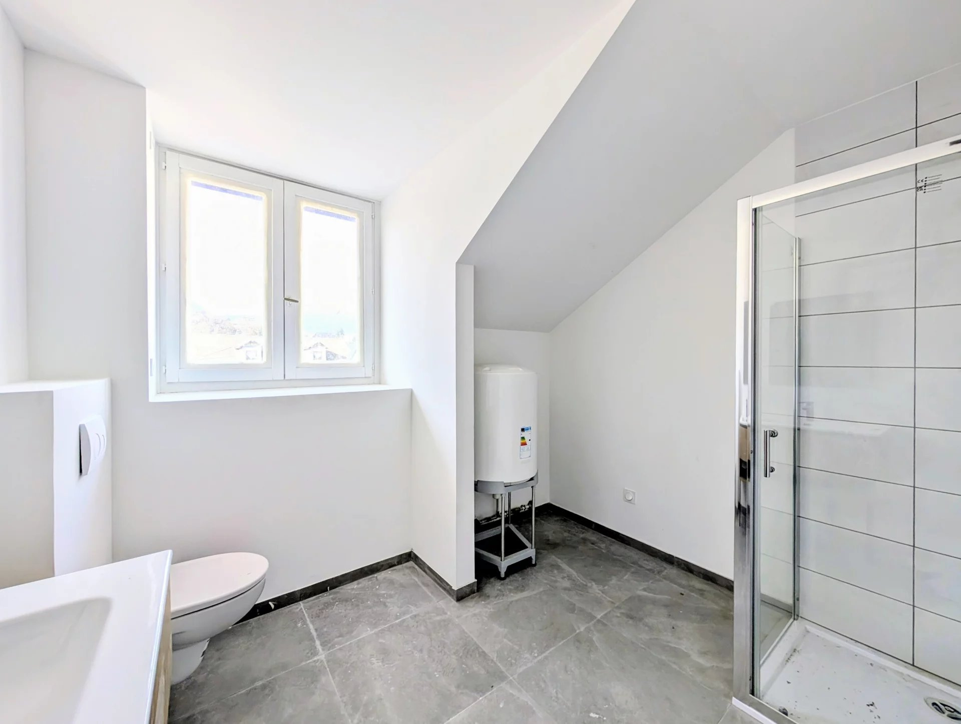 A VENDRE entre ville et lac, à deux pas du centre ville et de la gare d'Aix-Les-Bains. Dans une petite copropriété de 6 lots en fin de rénovation. Au deuxième et DERNIER ÉTAGE, un GRAND T2 de 56 m2 environs ( 52 carrez ), vendu avec sa cuisine meublée et une grande salle d'eau avec w.c. Appartement vendu avec une CAVE en sous-sol de 4.50m2. FAIBLE CHARGES (chauffage et eau chaude individuel). Idéal pieds à terre. investissement locatif ou premier achat. Le DPE sera réalisé après les travaux pour la vente.