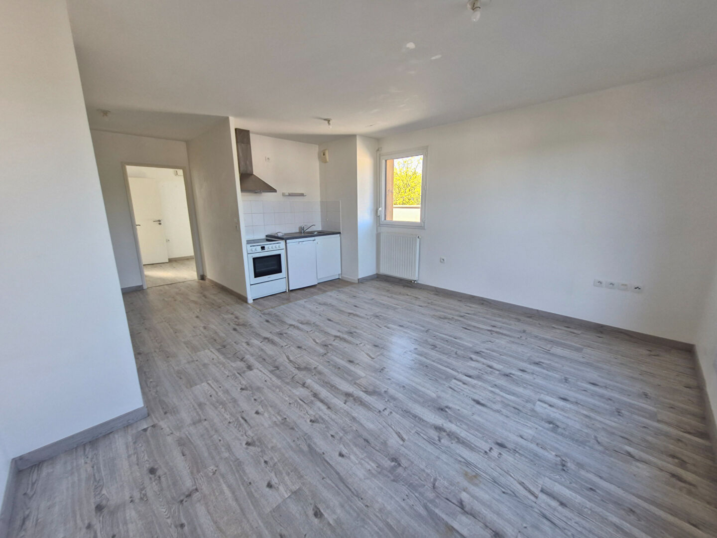 Entrée séparée avec placards, pièce de vie avec cuisine ouverte, chambre et salle d'eau. WC séparés.