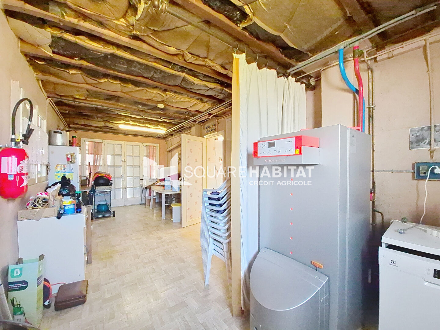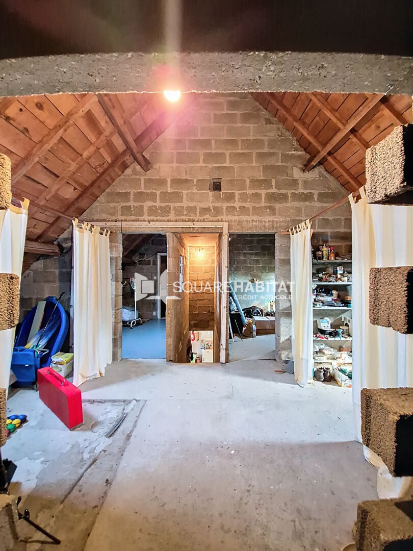 A l'étage, possibilité de créer un nouvel espace de vie de 90m² au sol, avec une bonne hauteur sous plafond, une base saine et une charpente en bon état.