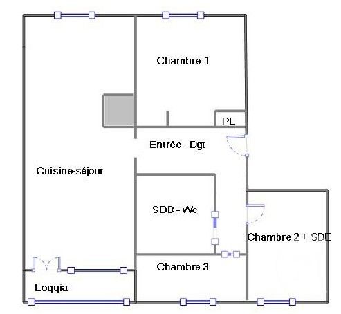 Il se compose ; d'une entrée avec dégagement, d'un séjour-cuisine, de deux chambres dont une avec salle d'eau et d'une salle de bains avec WC.