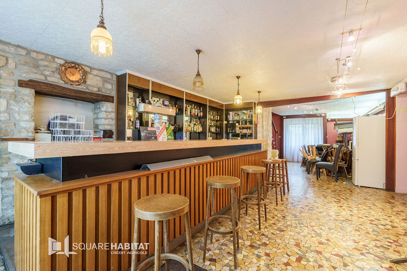 Ancien établissement d'environ 400m² recevant du public (bar) avec une partie habitable, le bien offre aujourd'hui de multiples possibilités d'exploitation : location courte durée, gîte, activité libérale, projet hôtelier ou mix habitation/professionnel.