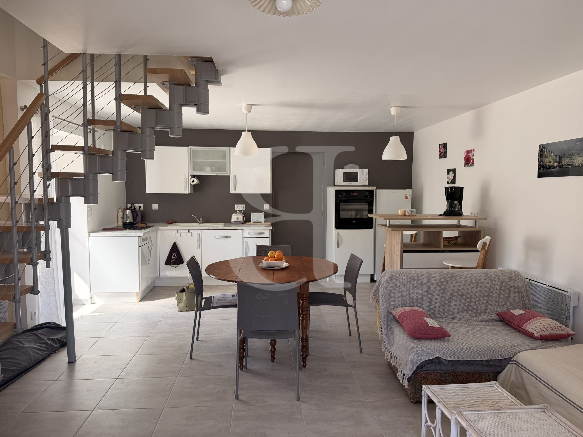 Au rez-de-chaussée, vous découvrirez un séjour agréable et lumineux avec cuisine équipée, accompagné d'un cellier pratique ainsi qu'une salle d'eau.
