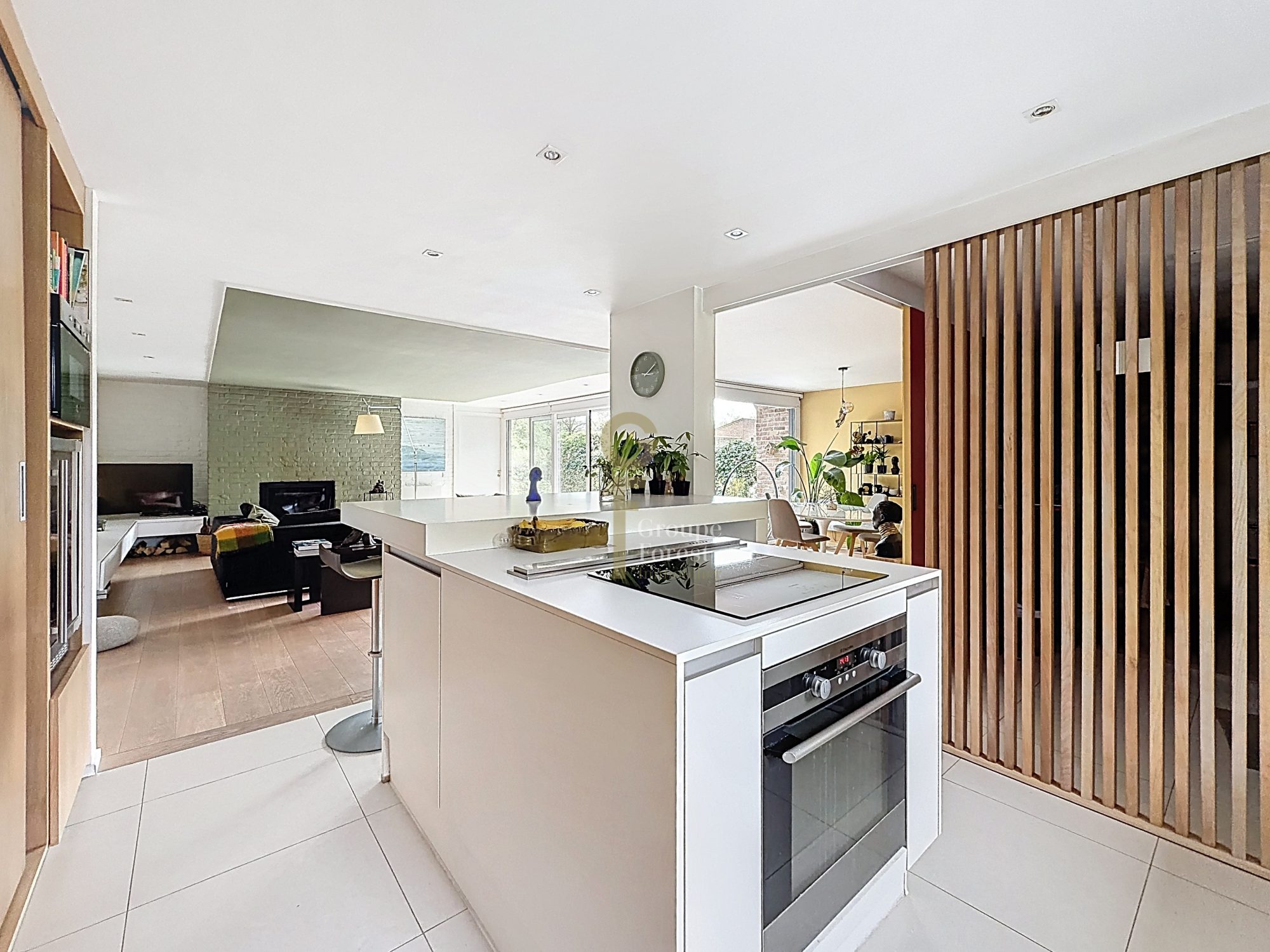 Semi plain pied avec ses 3 chambres en rez-de-jardin (dont suite parentale avec sa salle de douche), magnifique pièce de vie ouverte sur le jardin avec sa cheminée, une cuisine semi ouverte