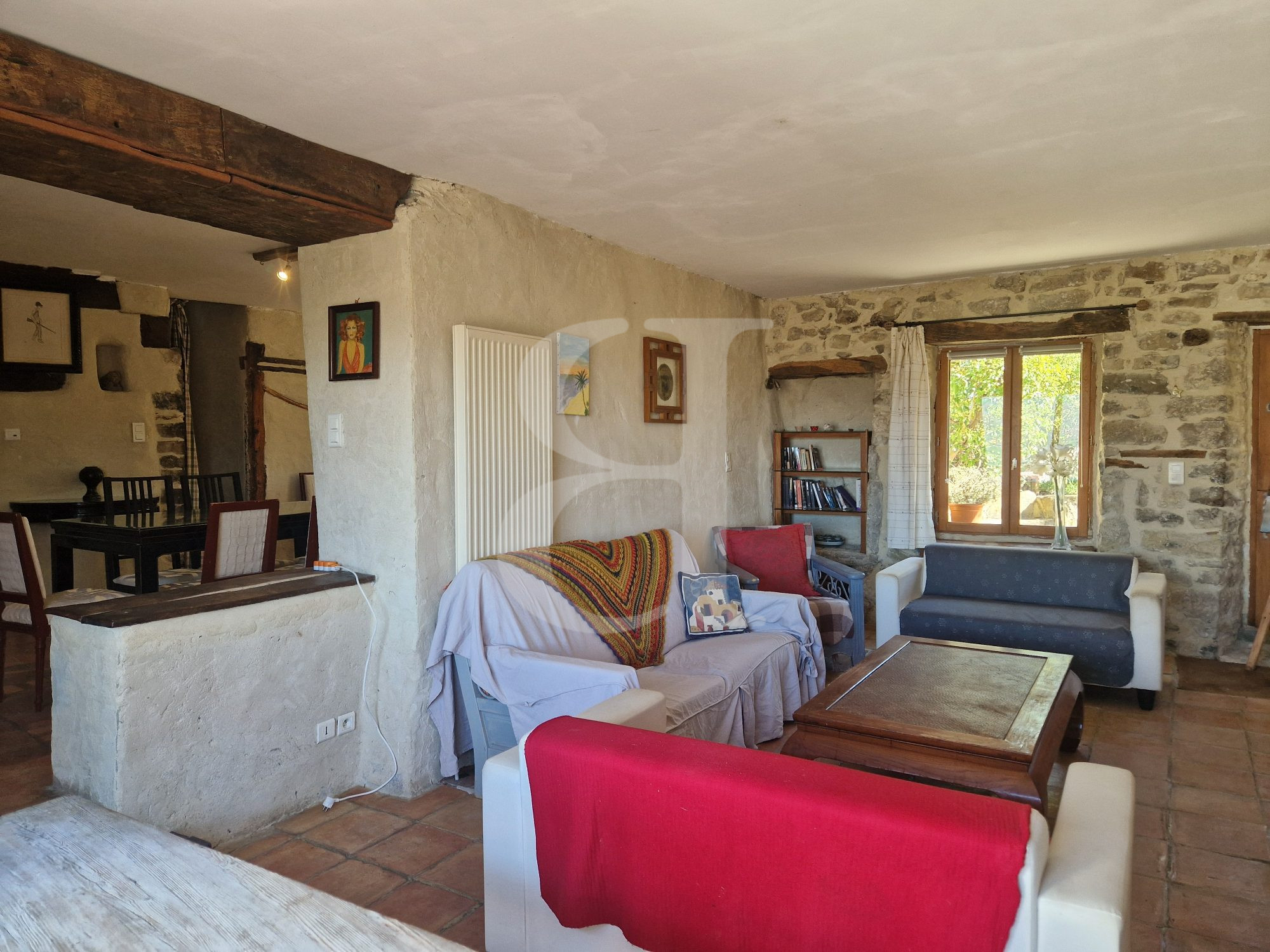 Dès l'entrée, le charme de l'ancien opère : pierres apparentes, poutres d'époque et volumes généreux se mêlent harmonieusement à des touches d'originalité.