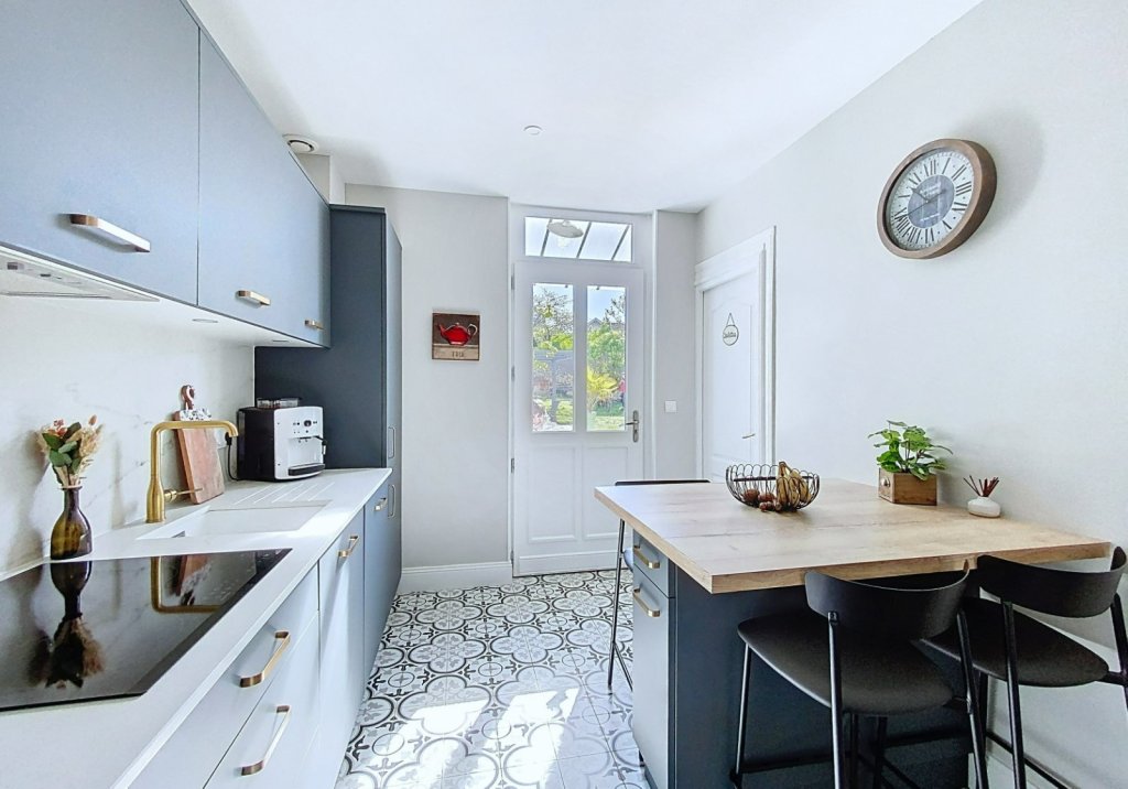 - Cuisine : Signée d'un cuisiniste (moins de 3 ans), moderne, entièrement équipée et ouvrant directement sur la terrasse.