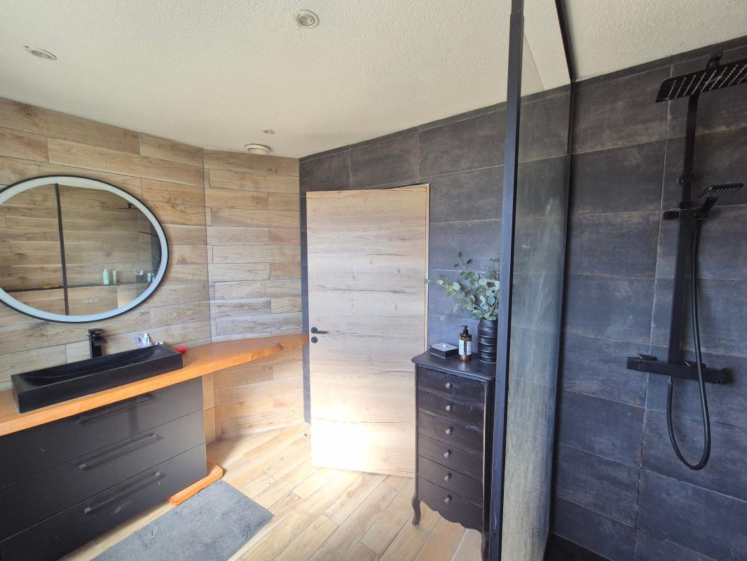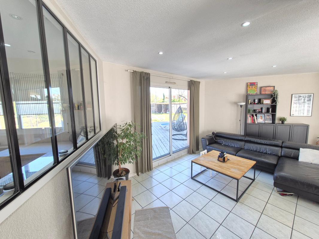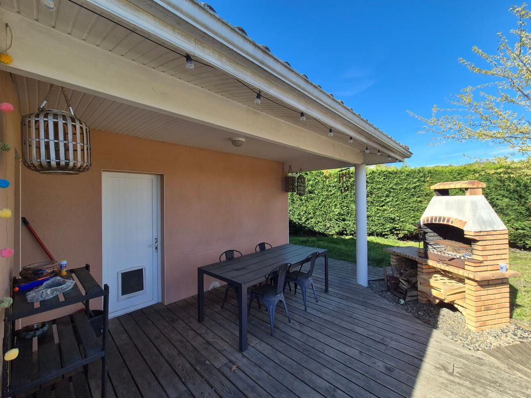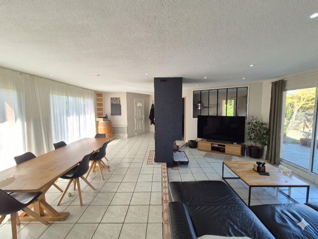 Dès l'entrée, vous découvrez un vaste séjour baigné de lumière naturelle, sublimé par une cheminée conviviale, véritable coeur de la maison. Cet espace de vie s'ouvre généreusement sur une agréable terrasse, créant une continuité fluide entre intérieur et extérieur.
