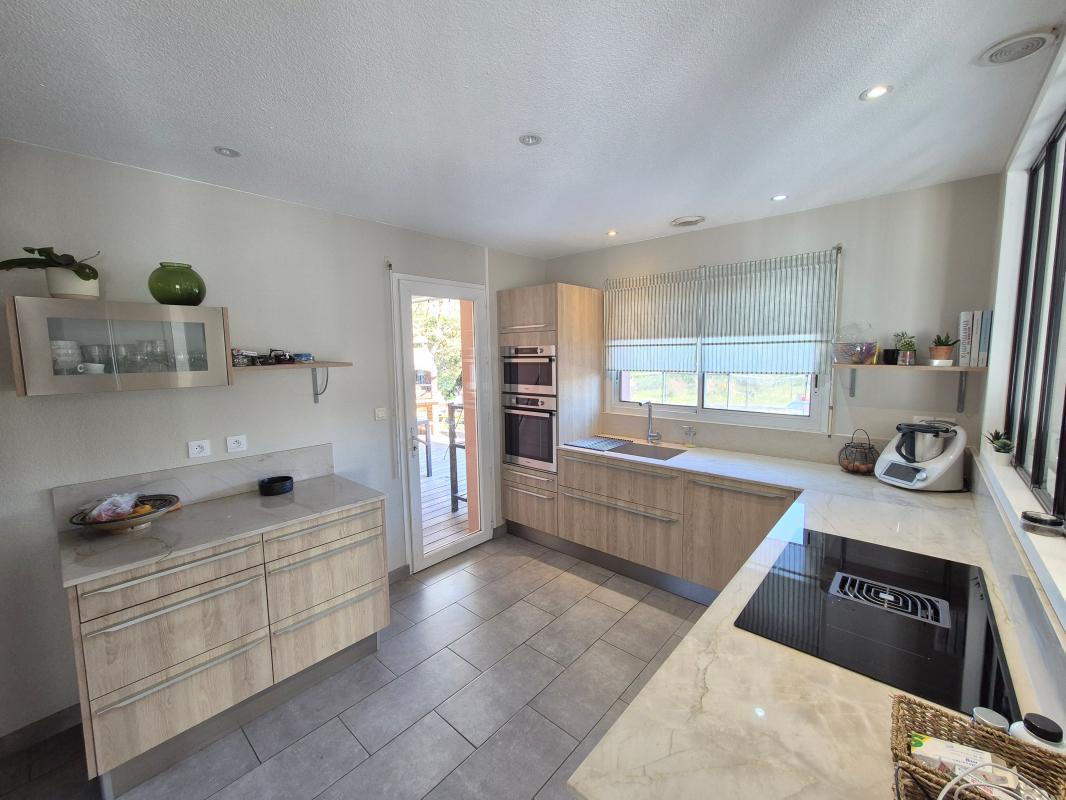À l'extérieur, une belle terrasse aménagée avec un coin barbecue invite à des moments de partage en toute convivialité. Elle surplombe une piscine attrayante et s'intègre parfaitement dans un terrain privatif de 1200 m², propice à la détente.