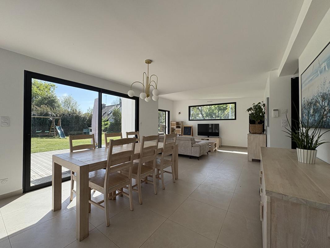 Située au calme dans un secteur prisé entre Aven et Bélon avec école et commerce à proximité, cette jolie contemporaine très lumineuse de 2024 (norme RT2012), vous offre une vraie vie de plain-pied avec en Rdc une entrée avec vestiaire, donnant sur une grande pièce de vie orientée sud, avec cuisine ouverte aménagée et équipée.