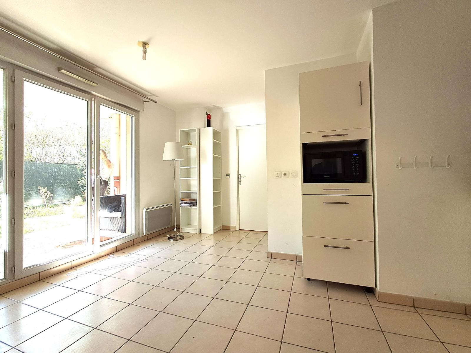 DECINES T2 REZ DE JARDIN GARAGE - Nadine et l'agence Corneille Saint-Marc transactions ont le plaisir de vous présenter un appartement T2 en rez-de-jardin comprenant : cuisine équipée ouverte sur la pièce de vie, 1 chambre avec placard, grande salle de bains ainsi qu'un w.c indépendant. Un garage en sous sol complète ce bien ( il est compris dans le prix ).