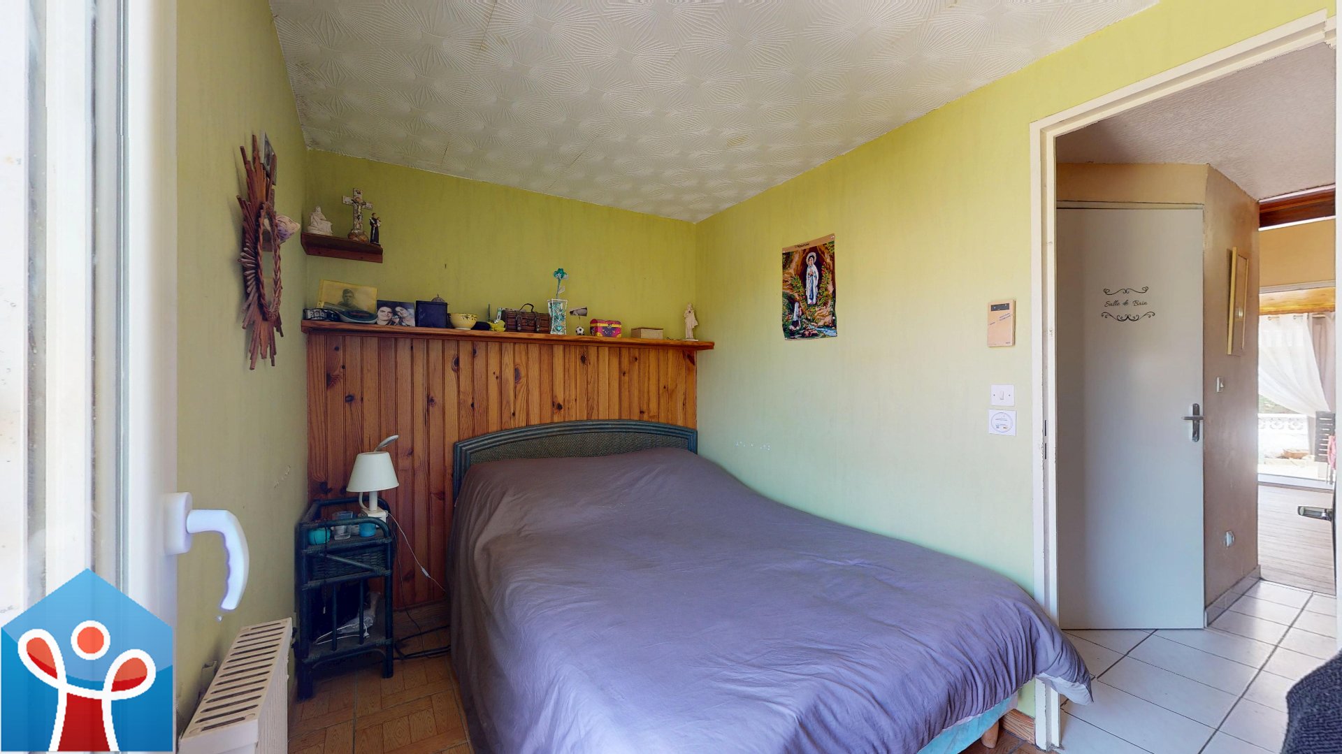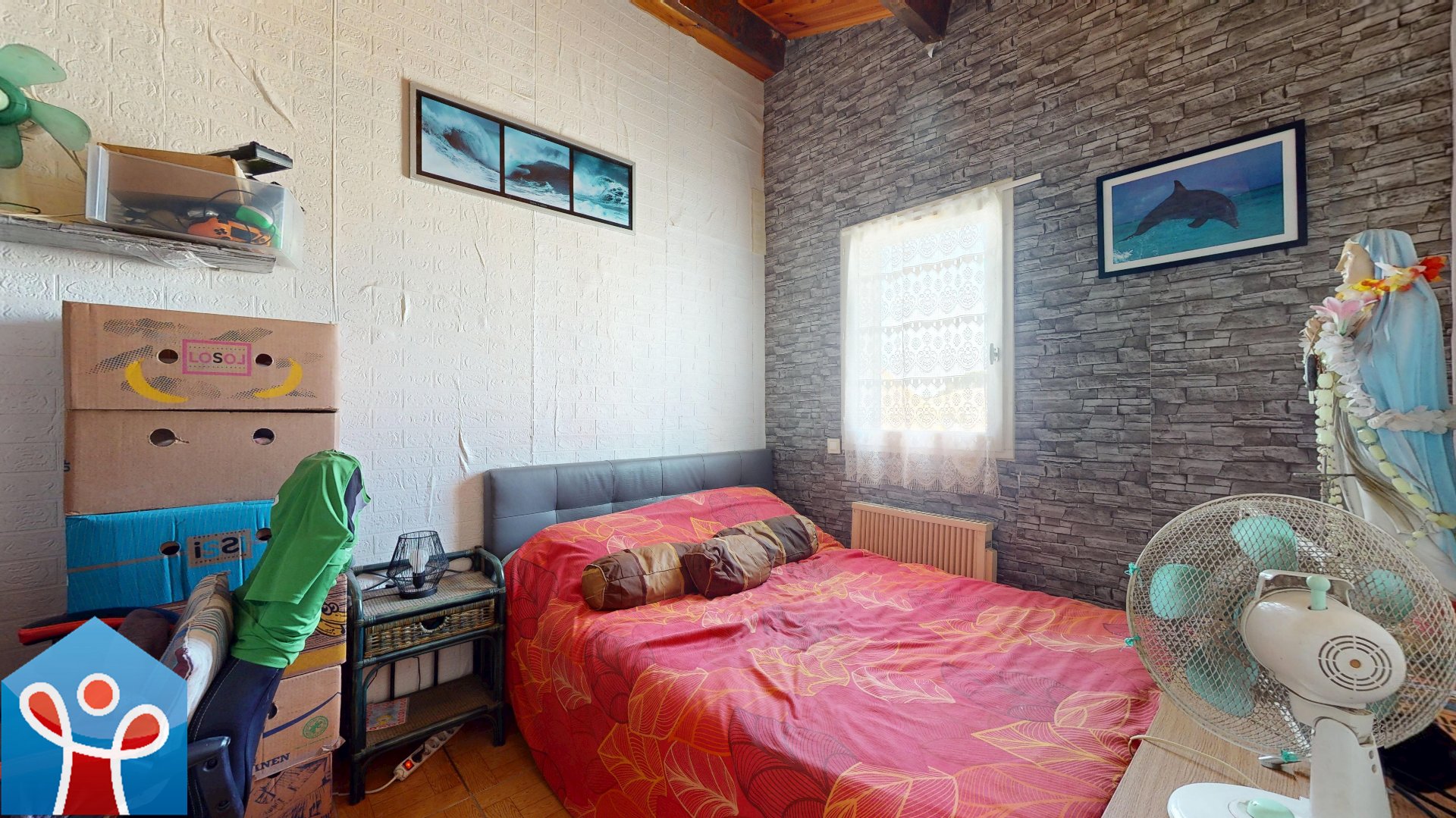 À l'étage, vous trouverez une mezzanine avec une hauteur sous plafond confortable ainsi qu'une seconde chambre.